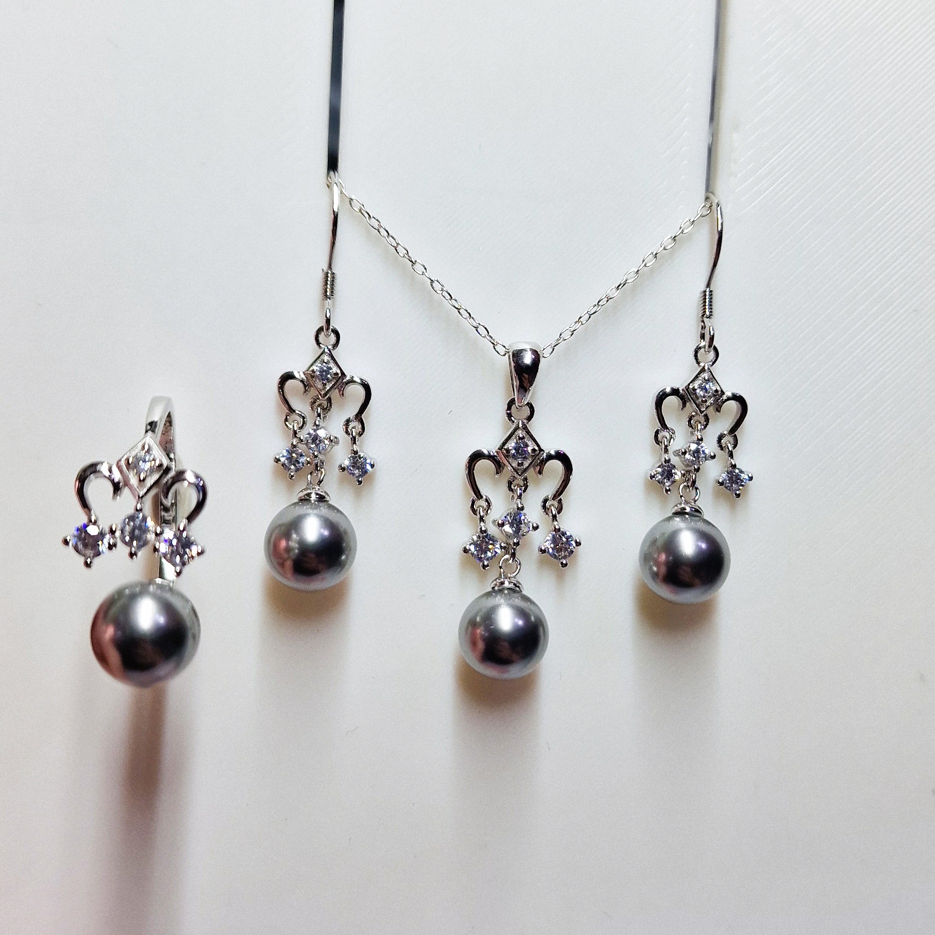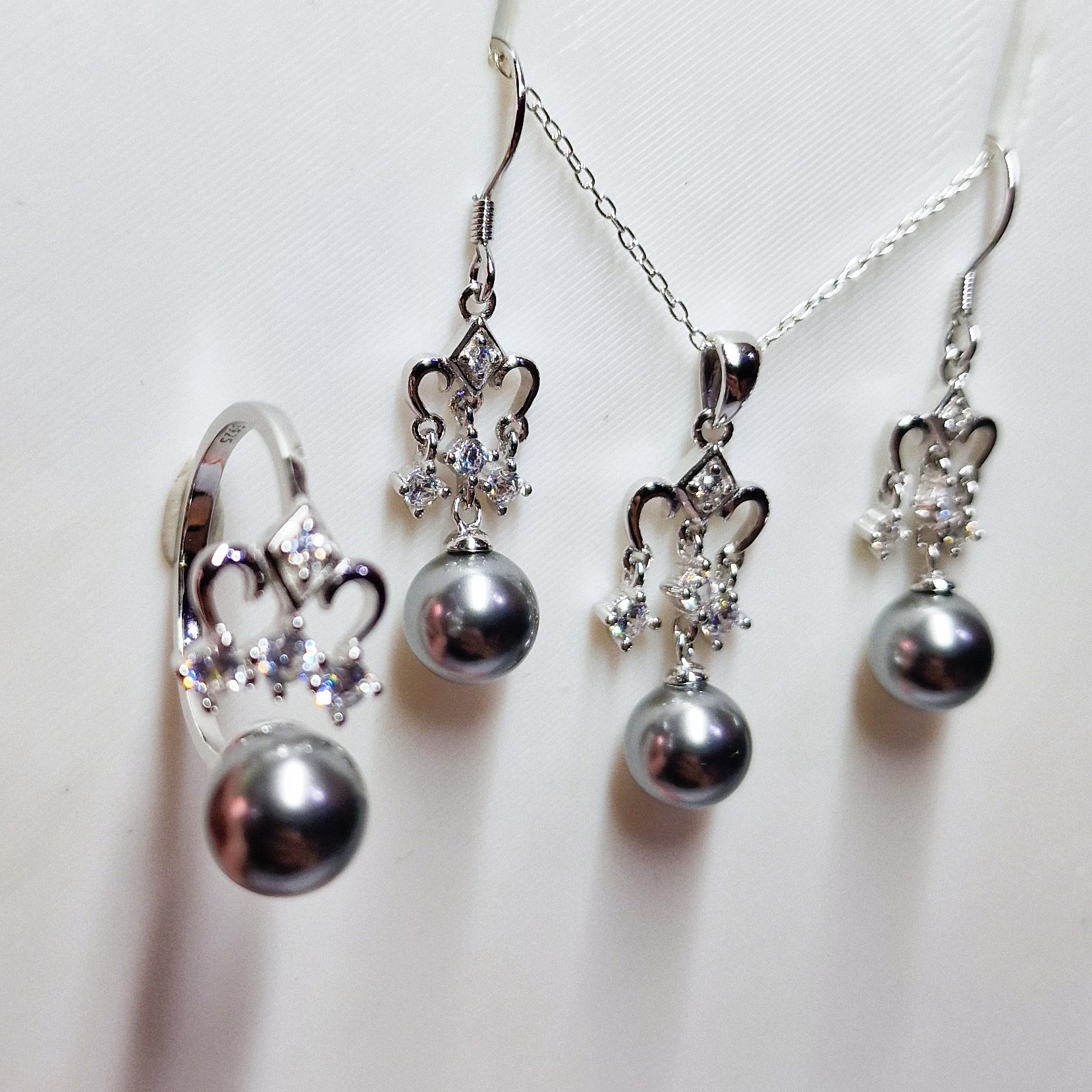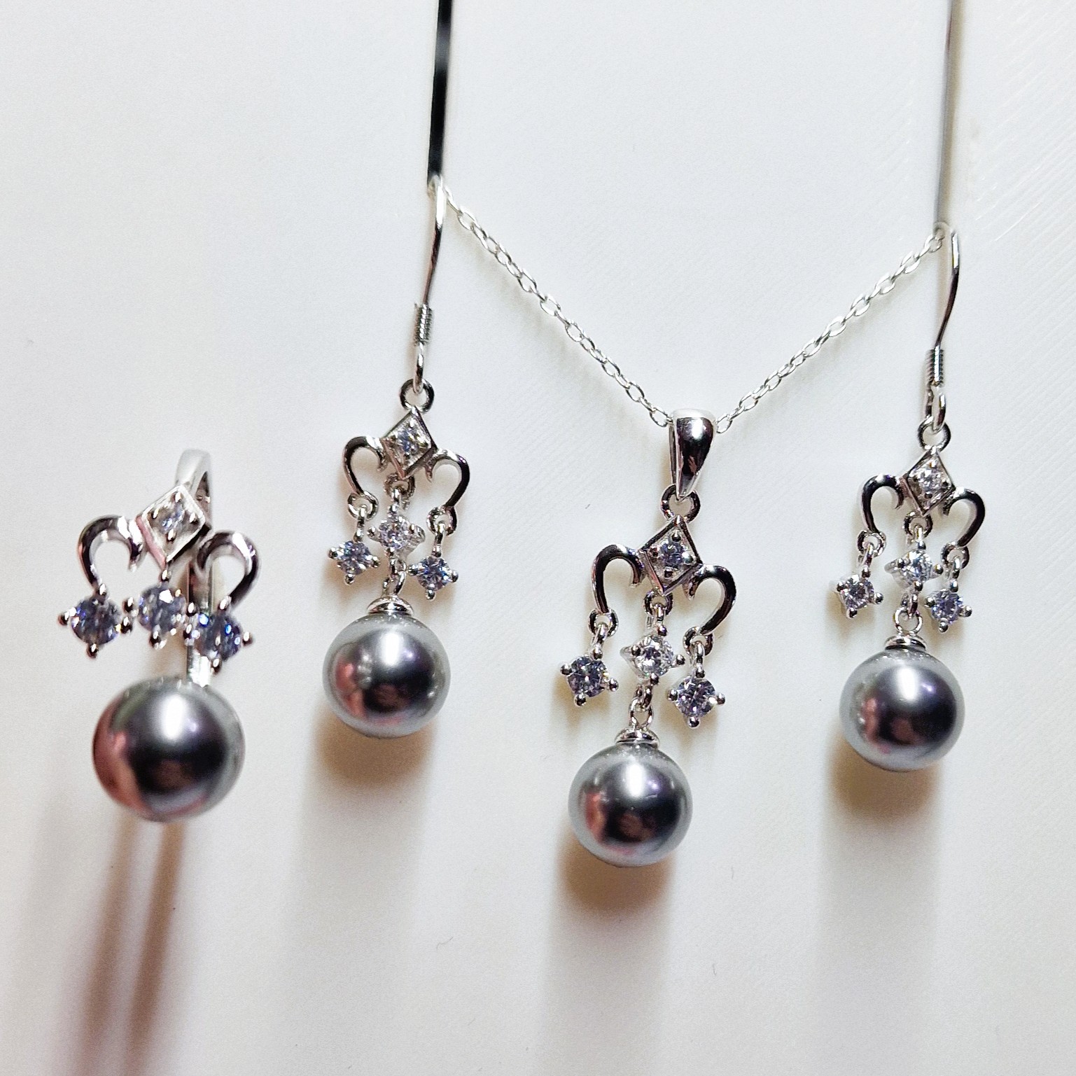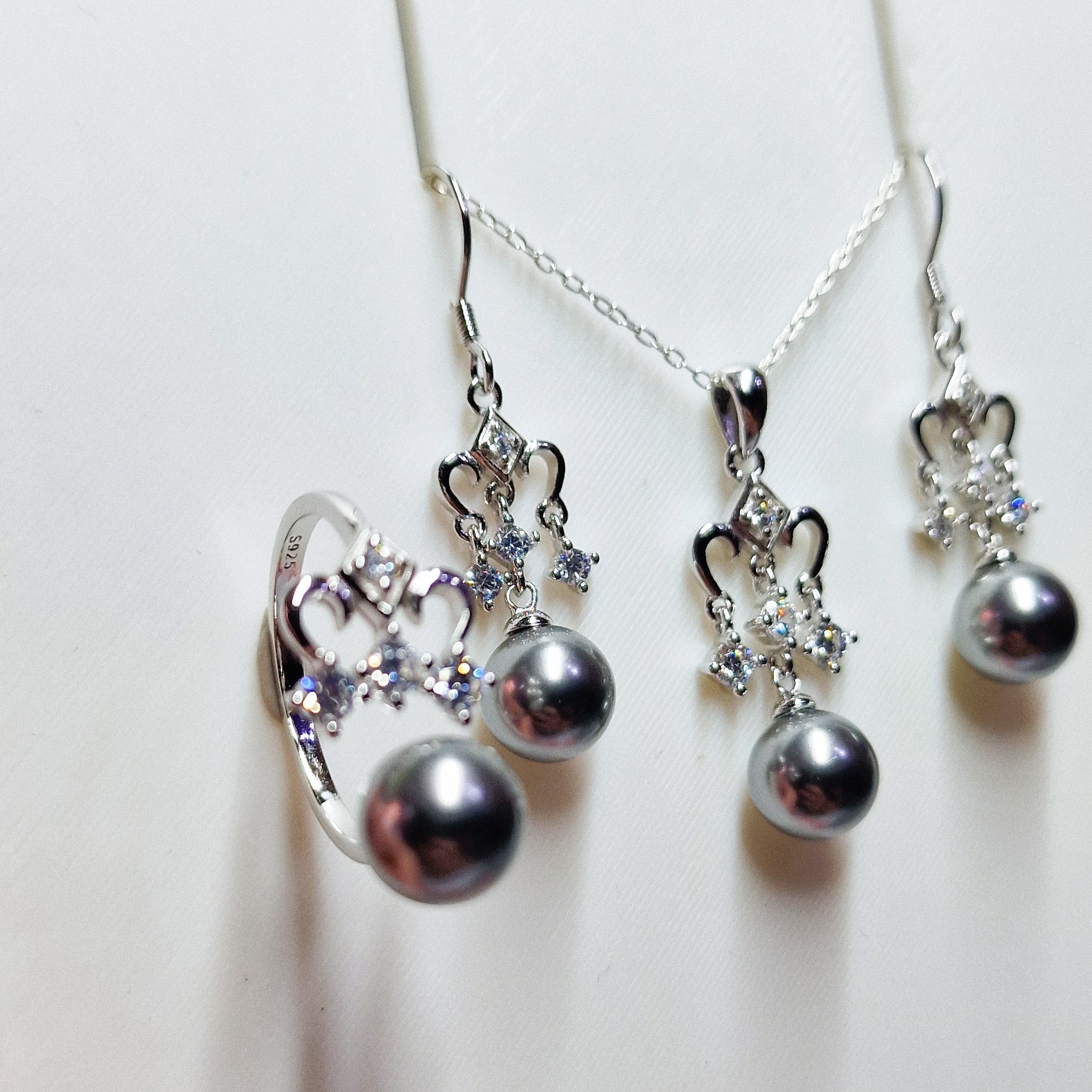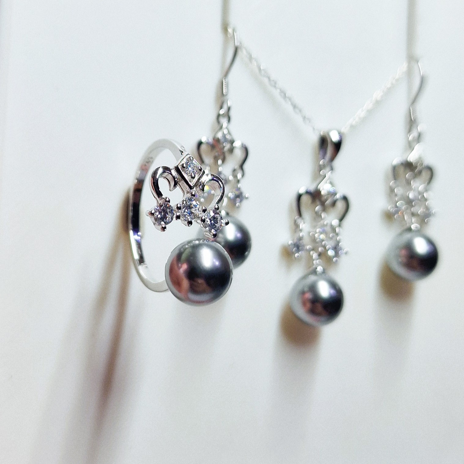 This stunning matching set, crafted from high-quality 925 sterling silver, includes a pendant, a pair of hook-back earrings, and a ring. This set features four openings designed to hold your unique pearls, making this set a perfect canvas for personalisation.