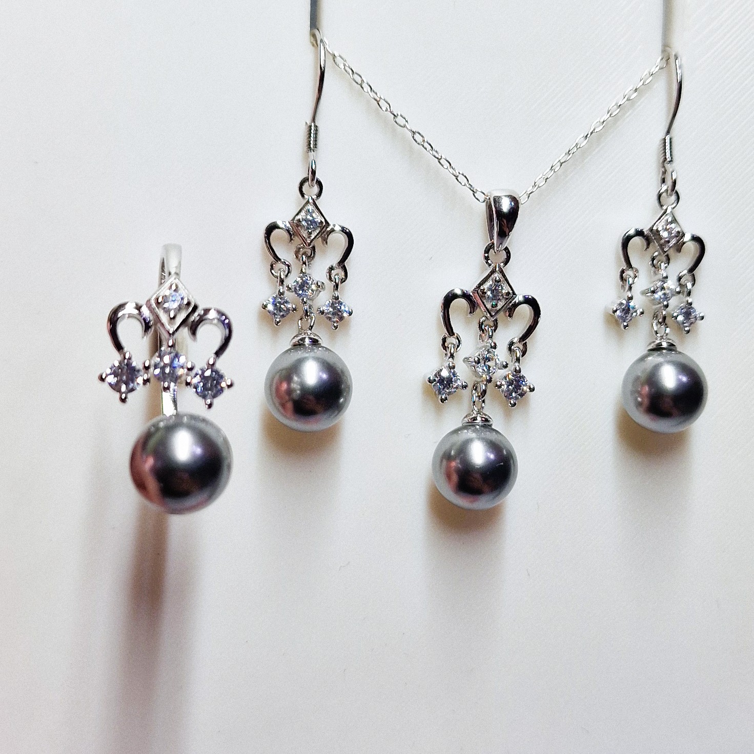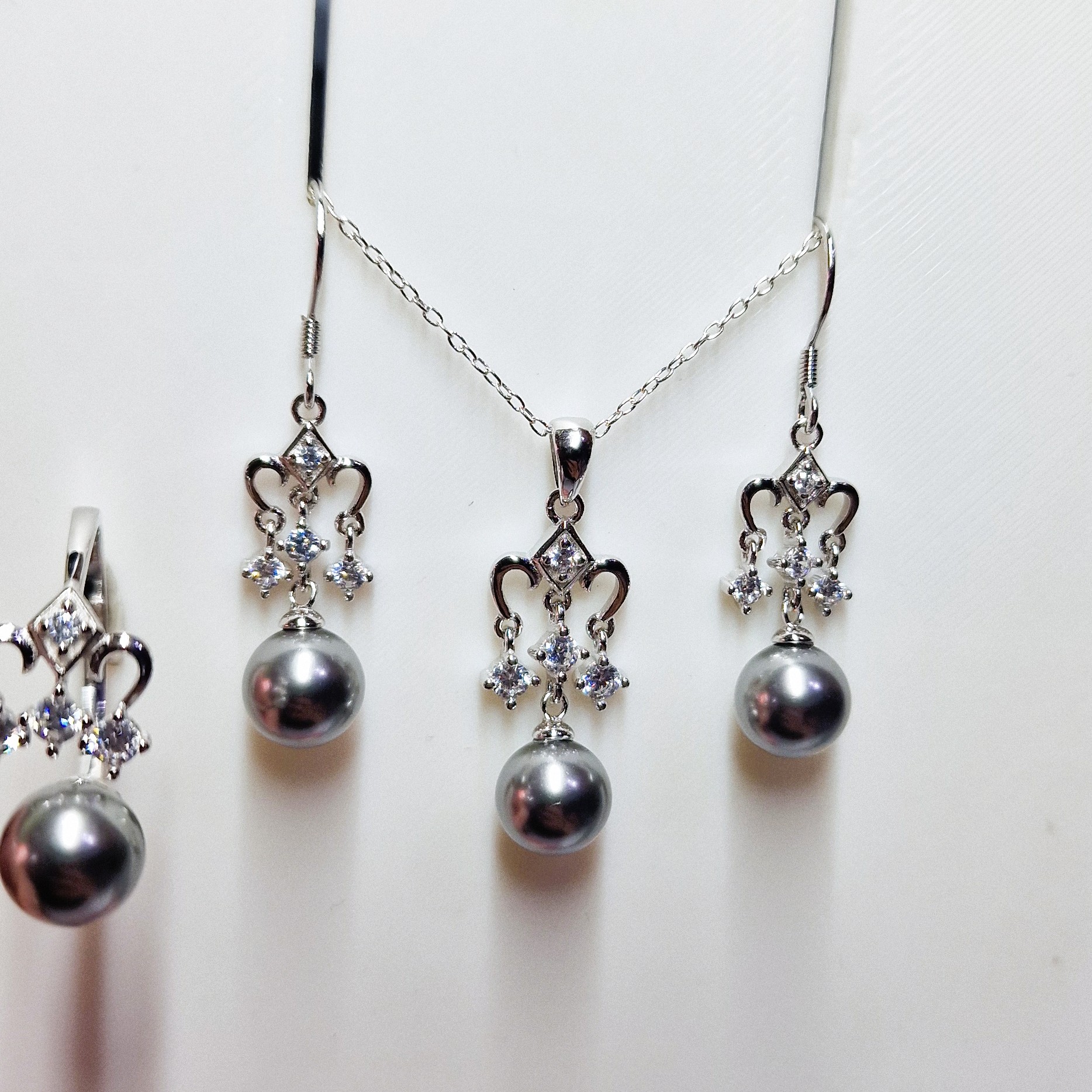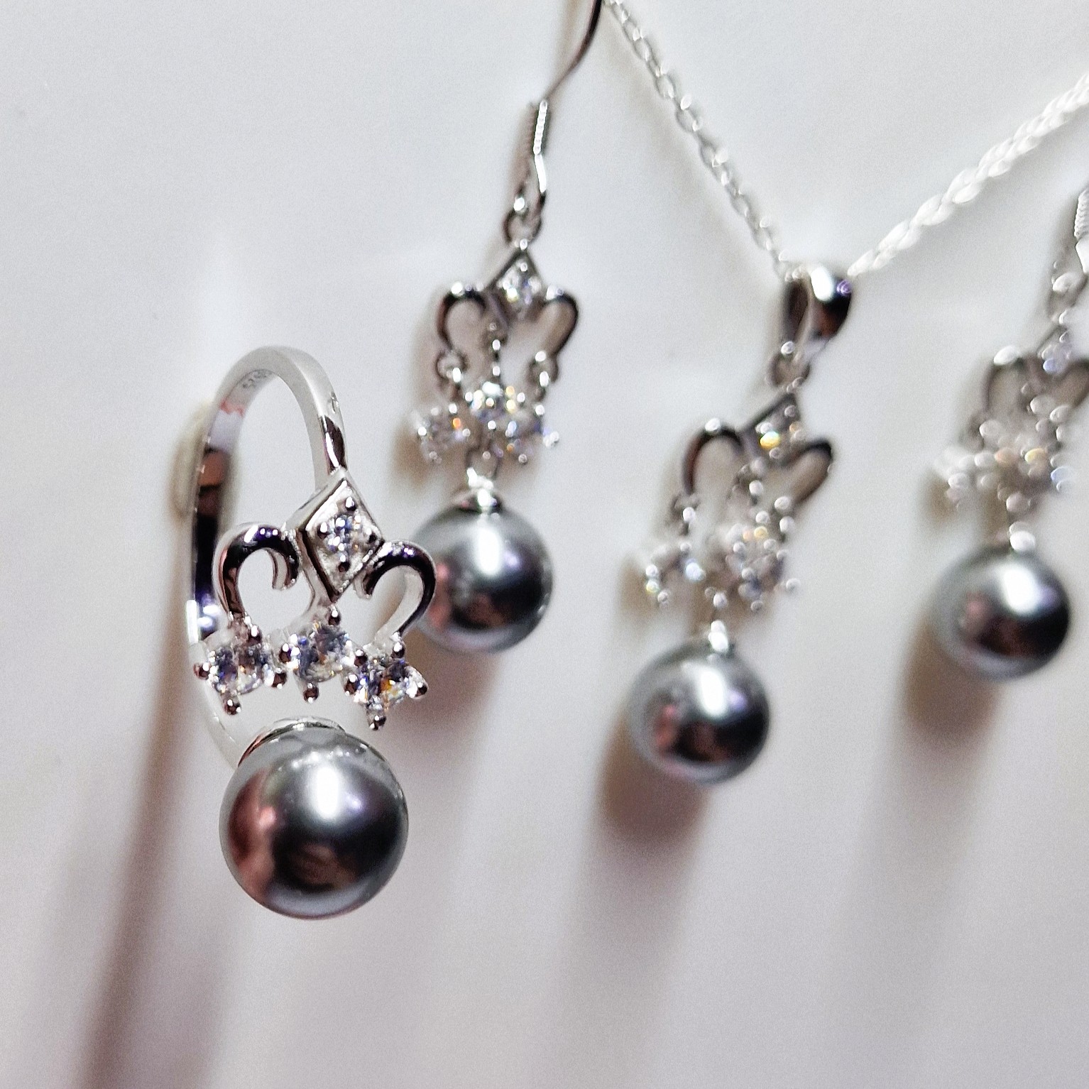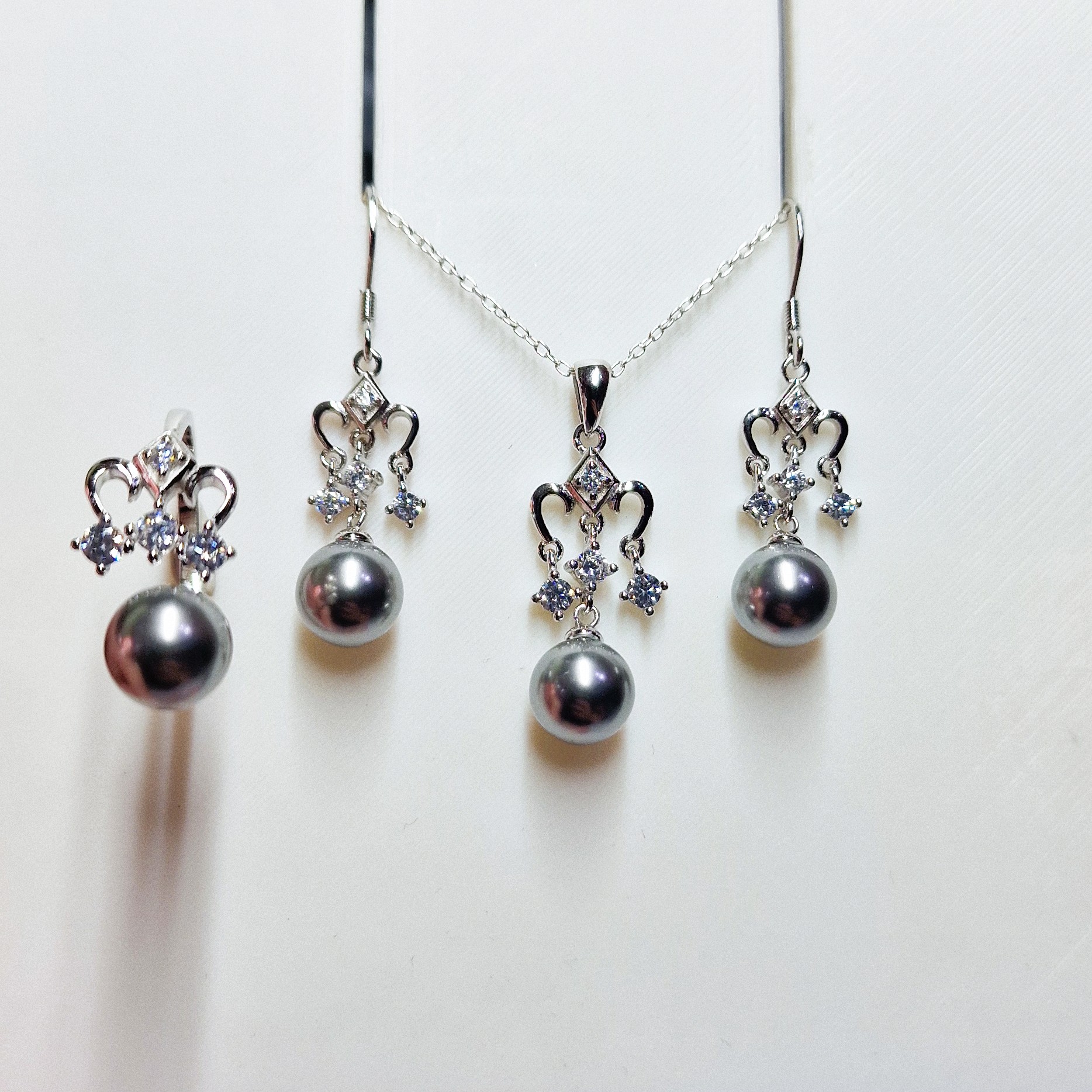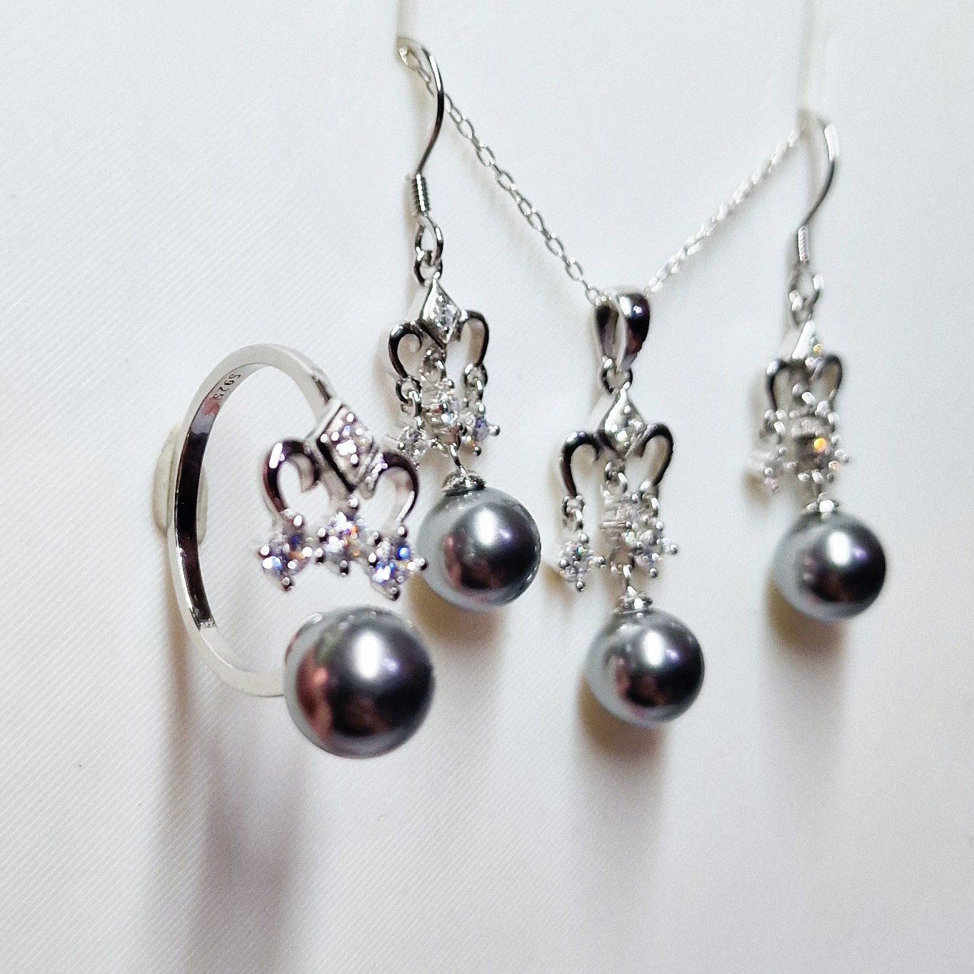 This stunning matching set, crafted from high-quality 925 sterling silver, includes a pendant, a pair of hook-back earrings, and a ring. This set features four openings designed to hold your unique pearls, making this set a perfect canvas for personalisation.