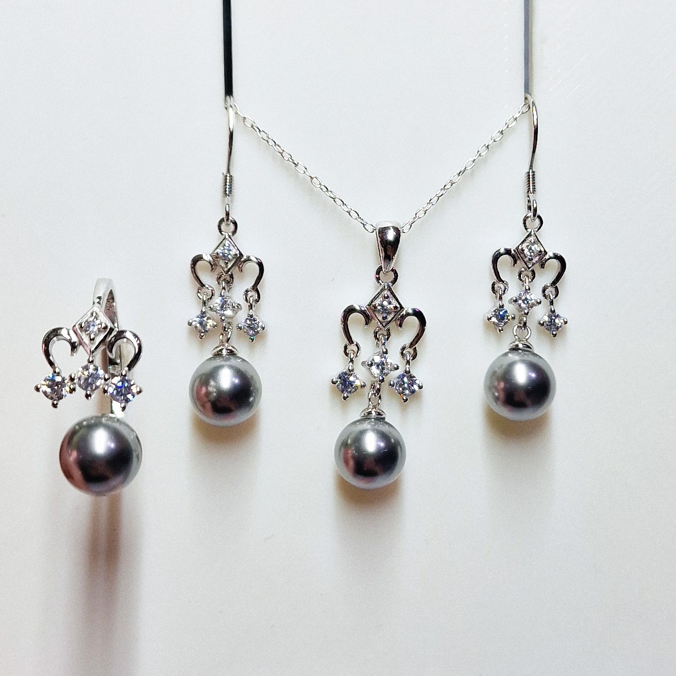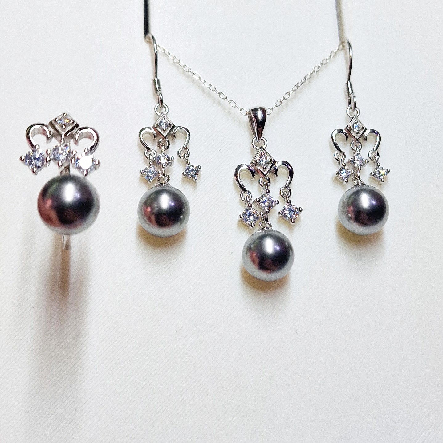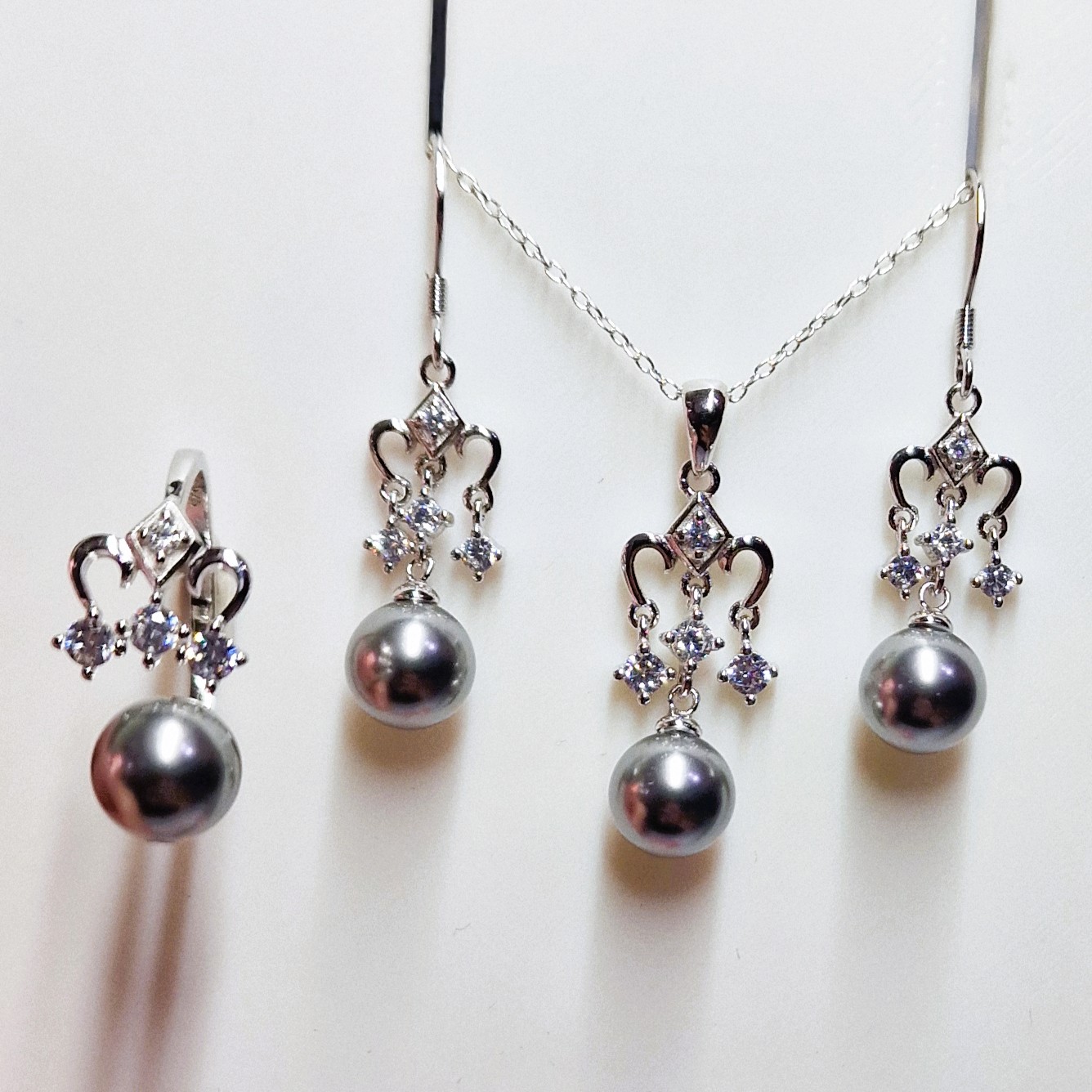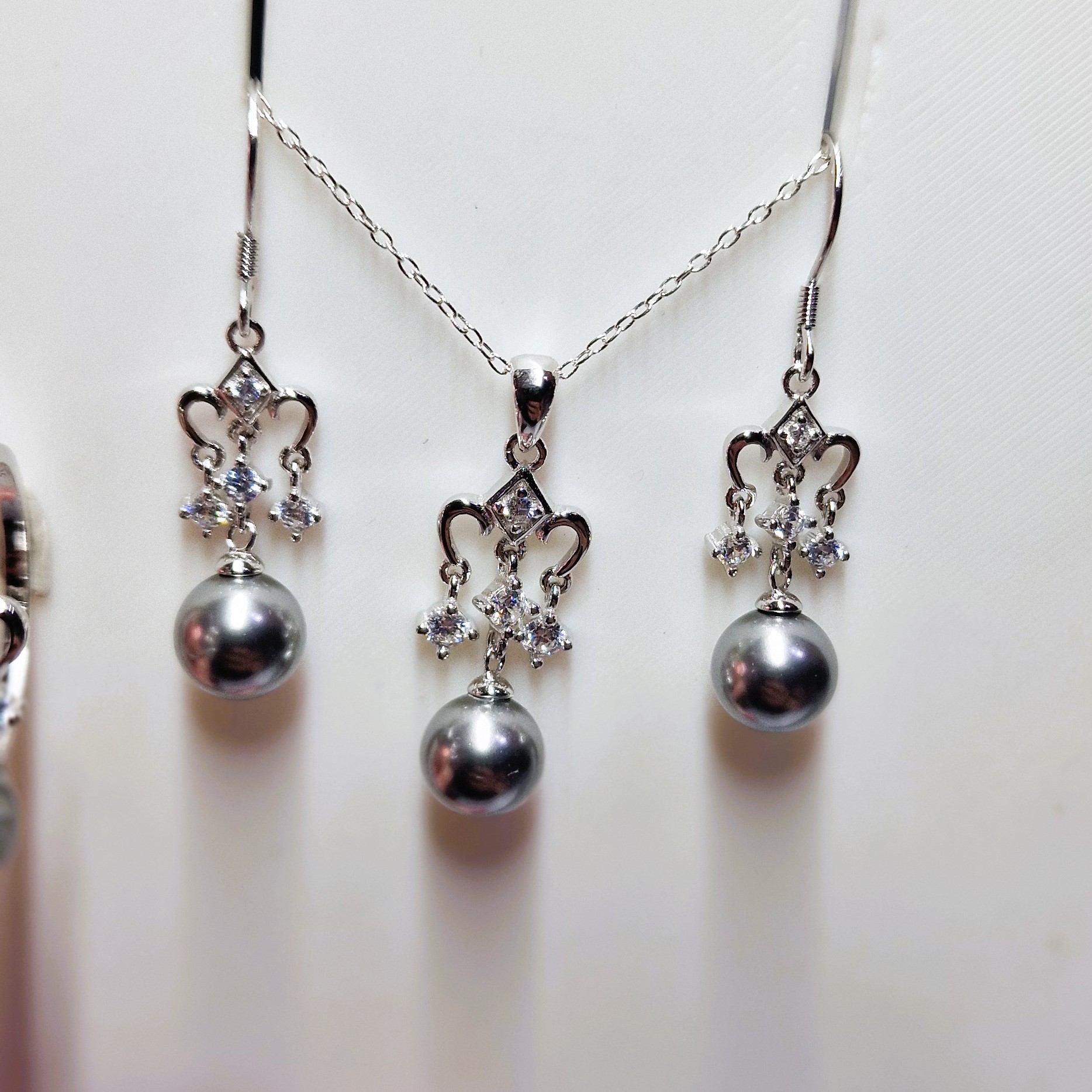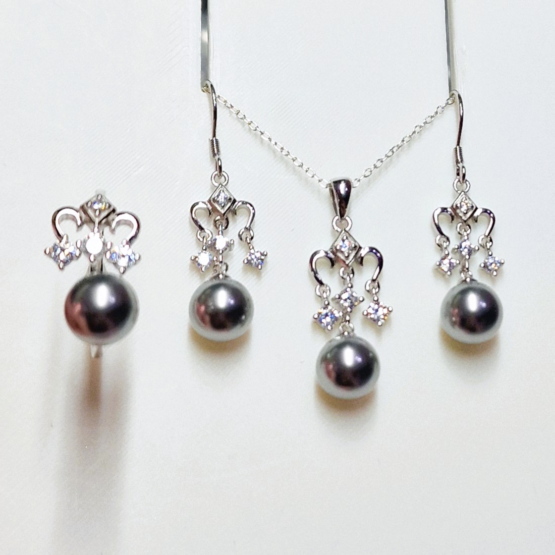 This stunning matching set, crafted from high-quality 925 sterling silver, includes a pendant, a pair of hook-back earrings, and a ring. This set features four openings designed to hold your unique pearls, making this set a perfect canvas for personalisation.