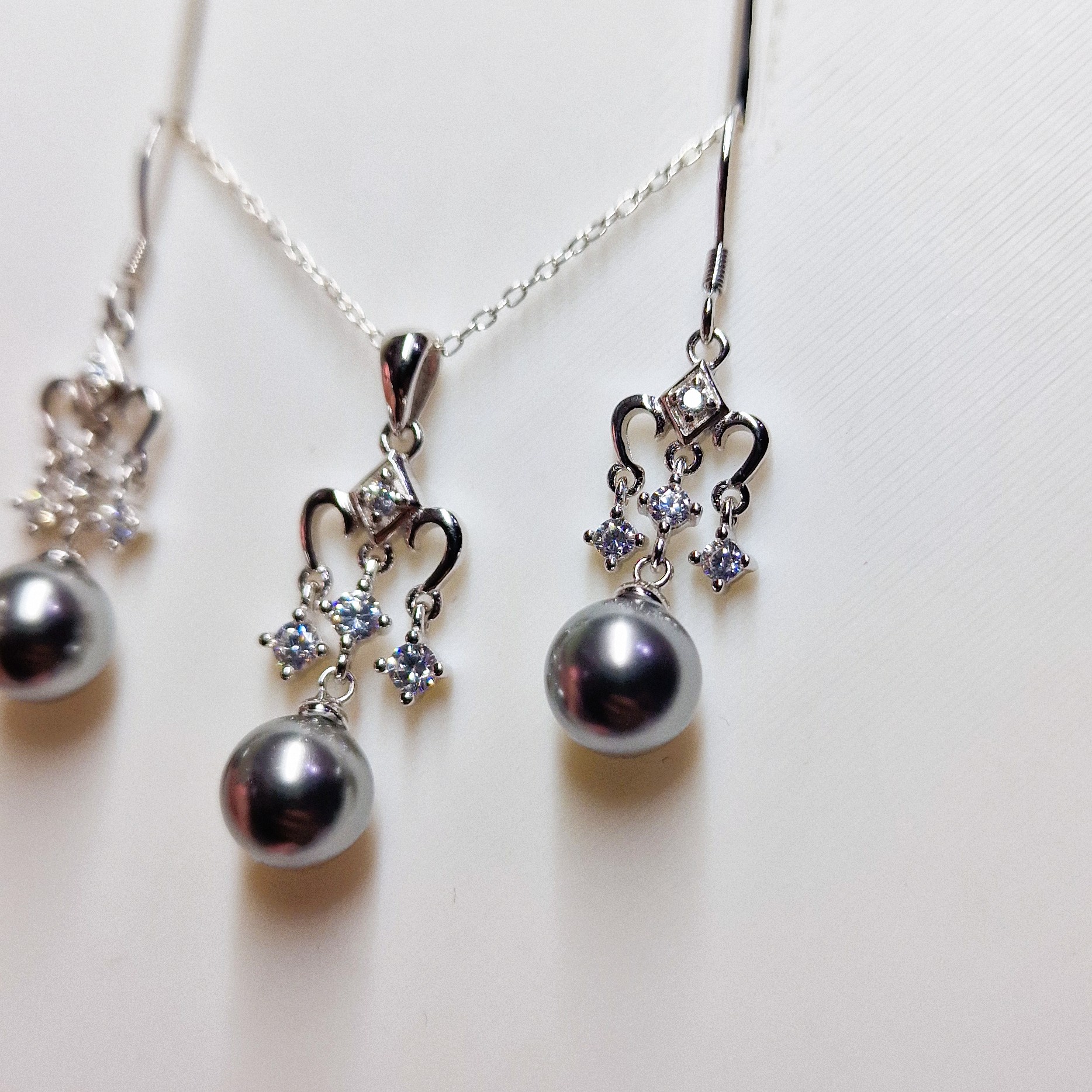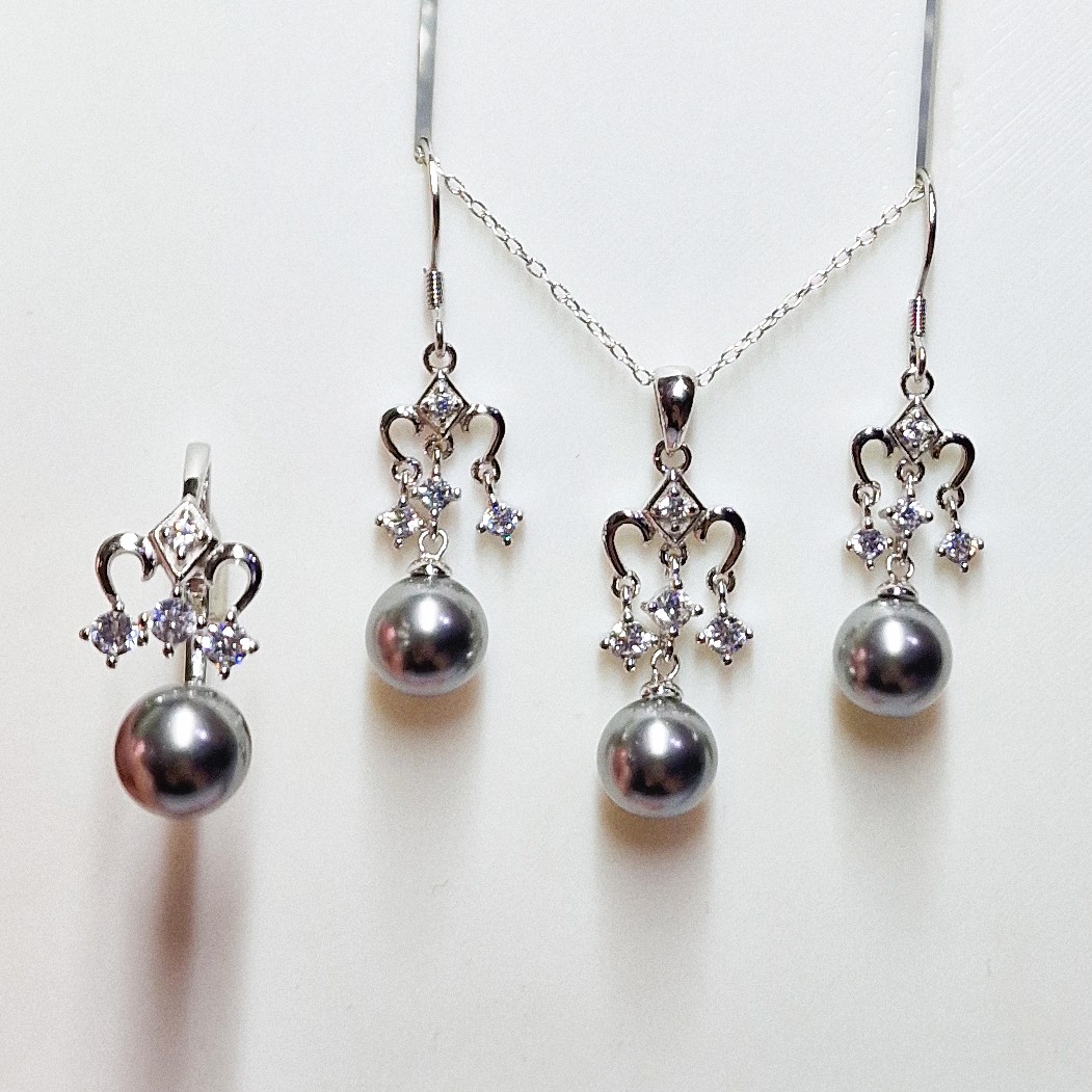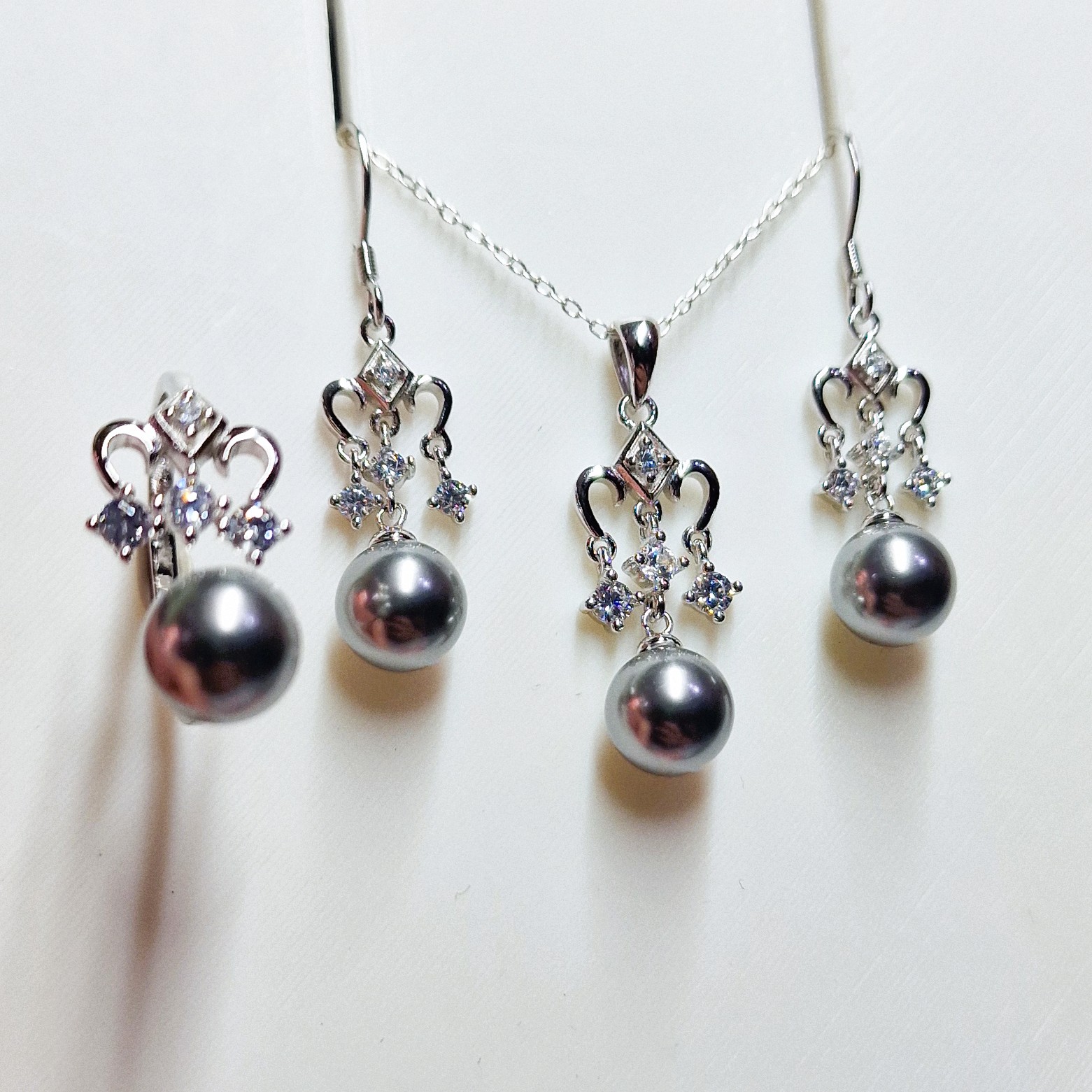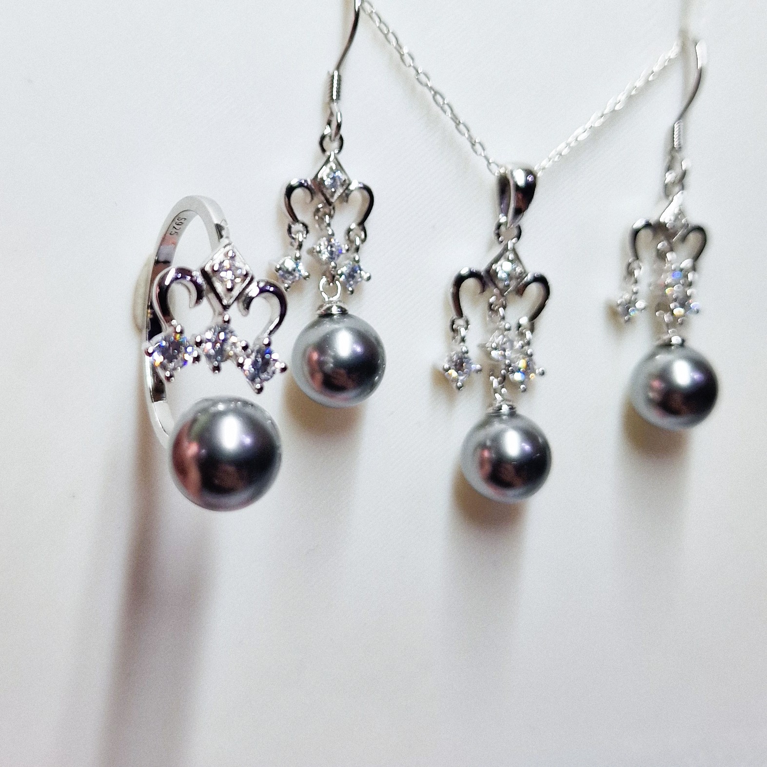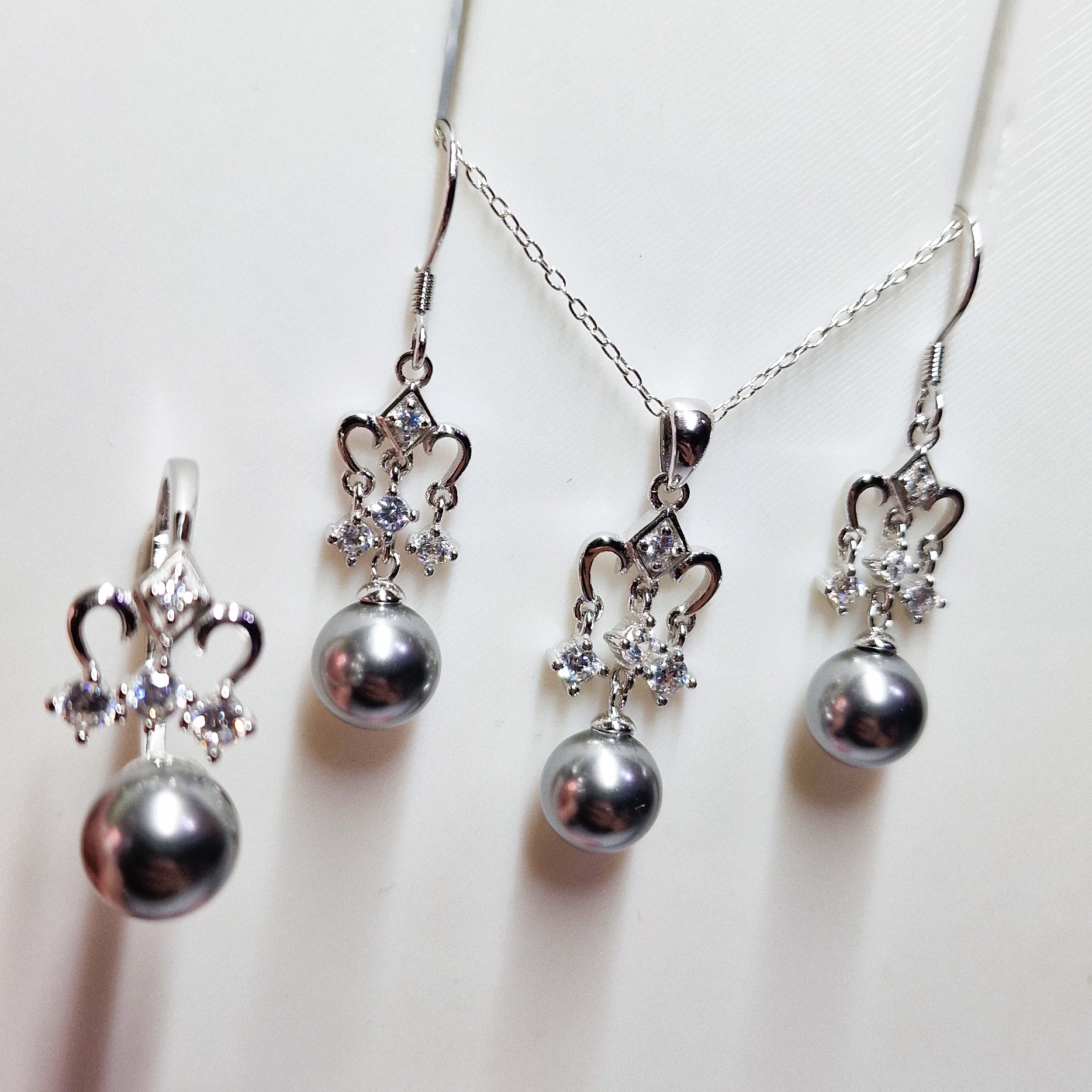 This stunning matching set, crafted from high-quality 925 sterling silver, includes a pendant, a pair of hook-back earrings, and a ring. This set features four openings designed to hold your unique pearls, making this set a perfect canvas for personalisation.