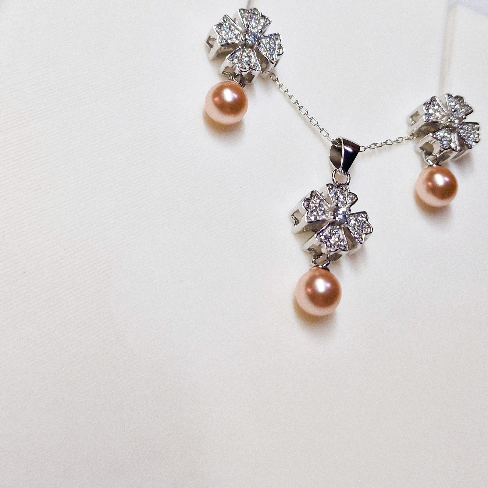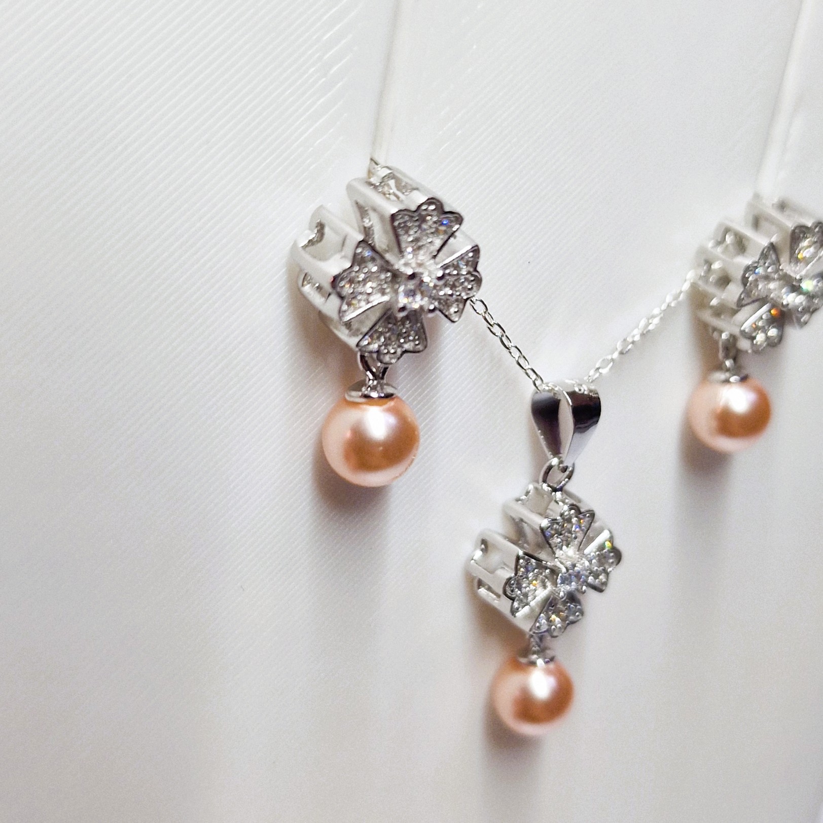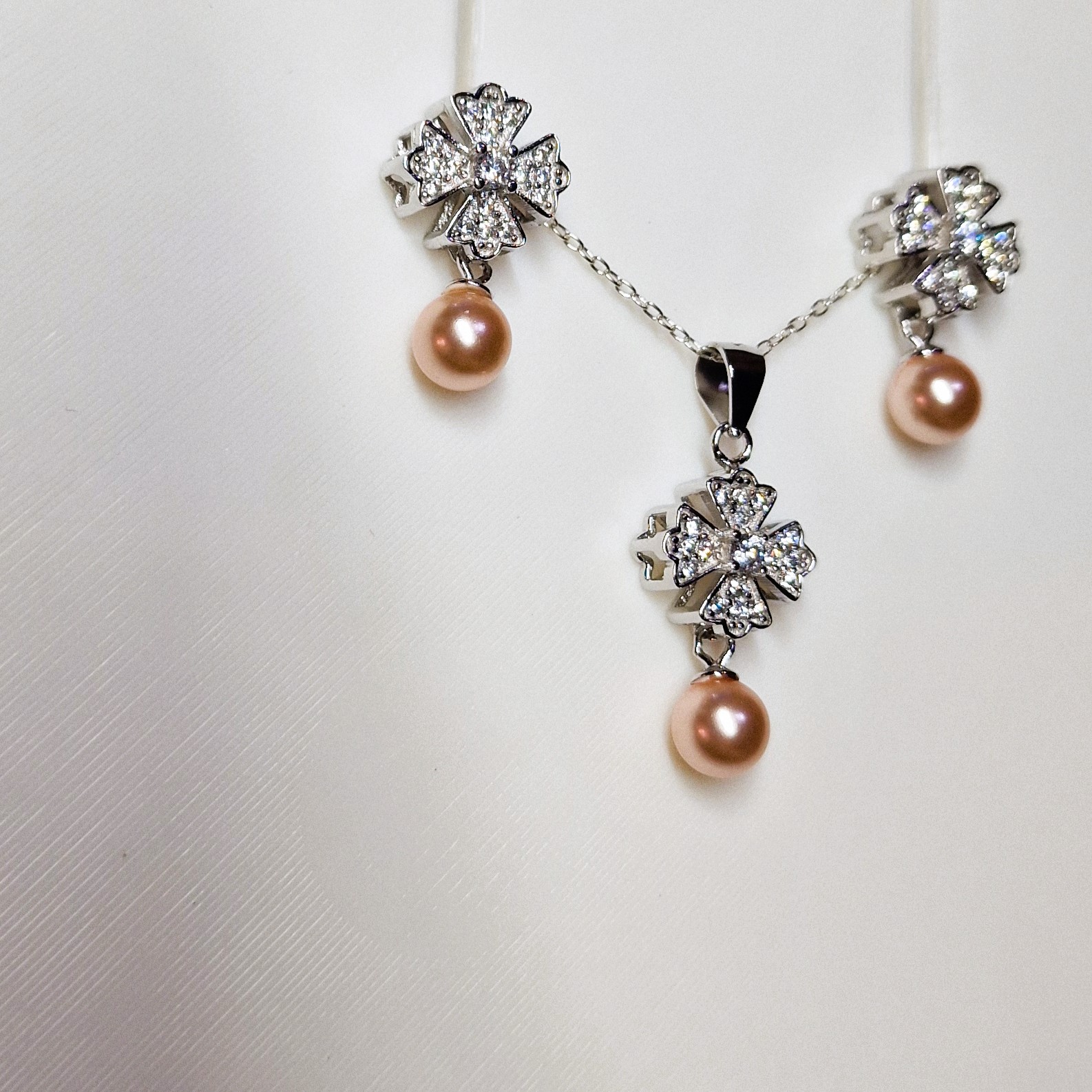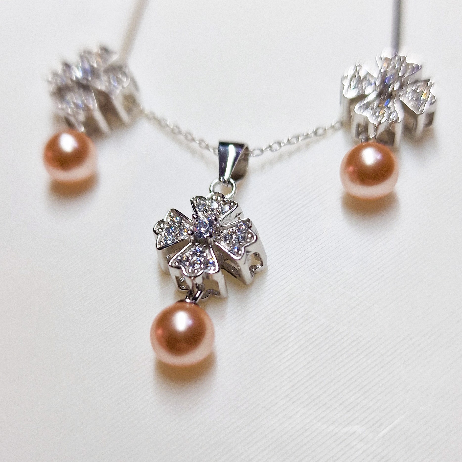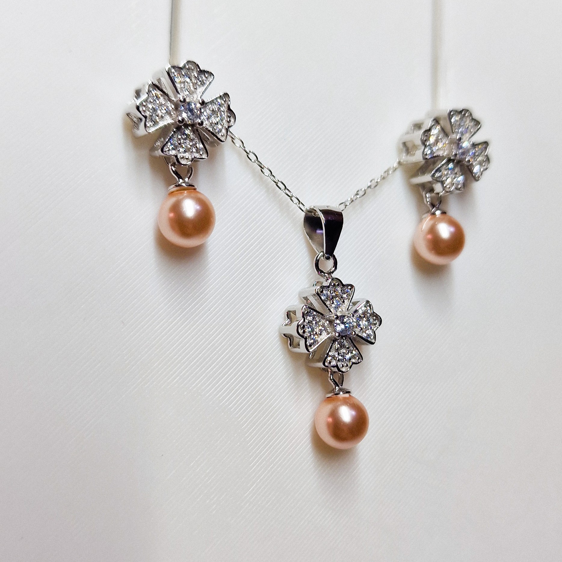 This stunning matching set, crafted from high-quality 925 sterling silver, includes a pendant, and a pair of stud-back earrings. This set features three openings designed to hold your unique pearls, making this set a perfect canvas for personalisation.