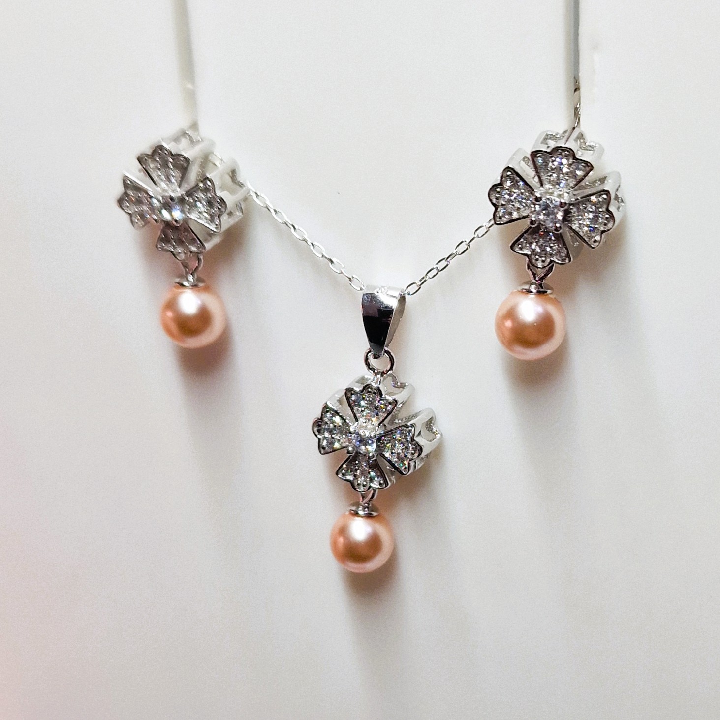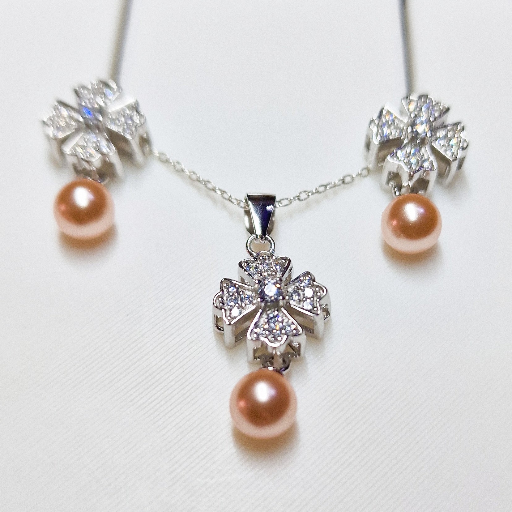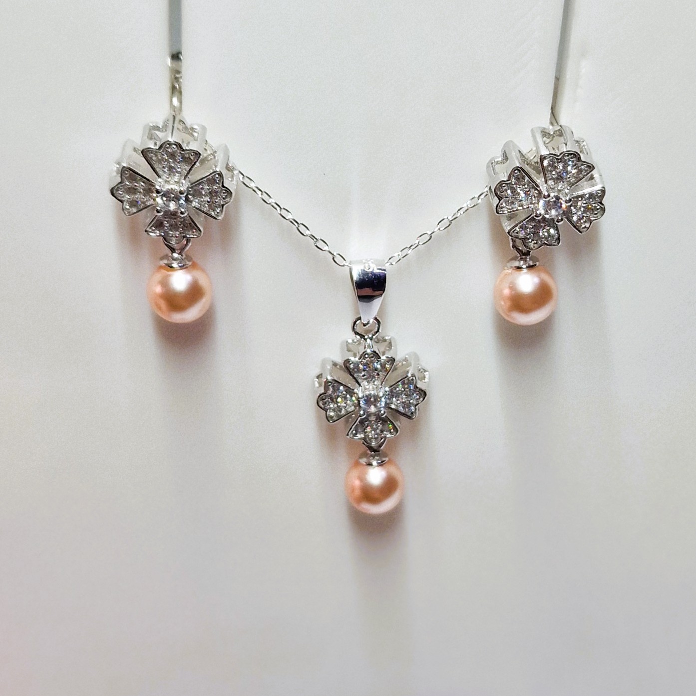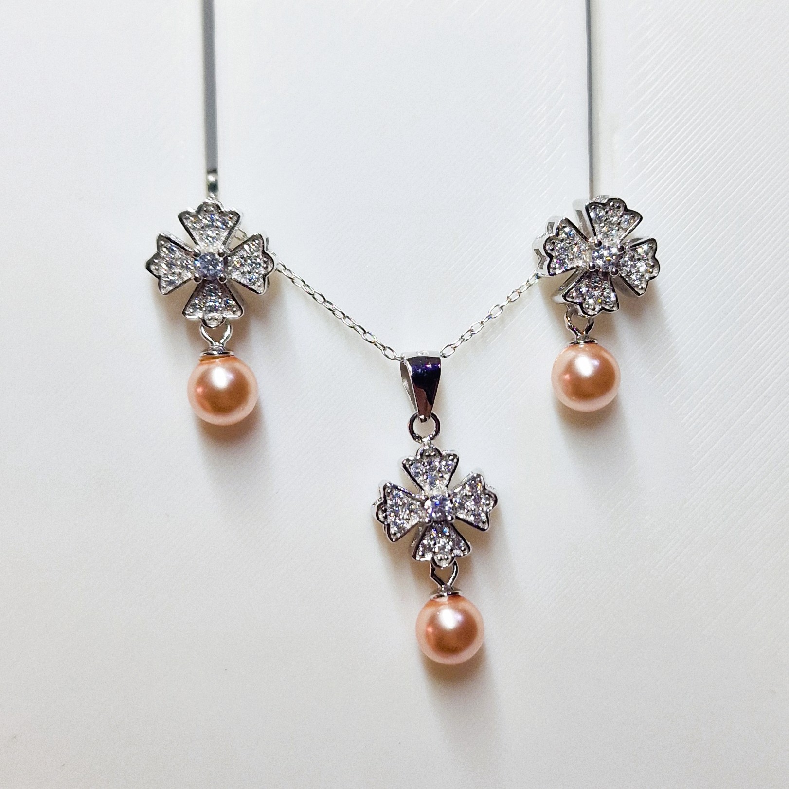 This stunning matching set, crafted from high-quality 925 sterling silver, includes a pendant, and a pair of stud-back earrings. This set features three openings designed to hold your unique pearls, making this set a perfect canvas for personalisation.
