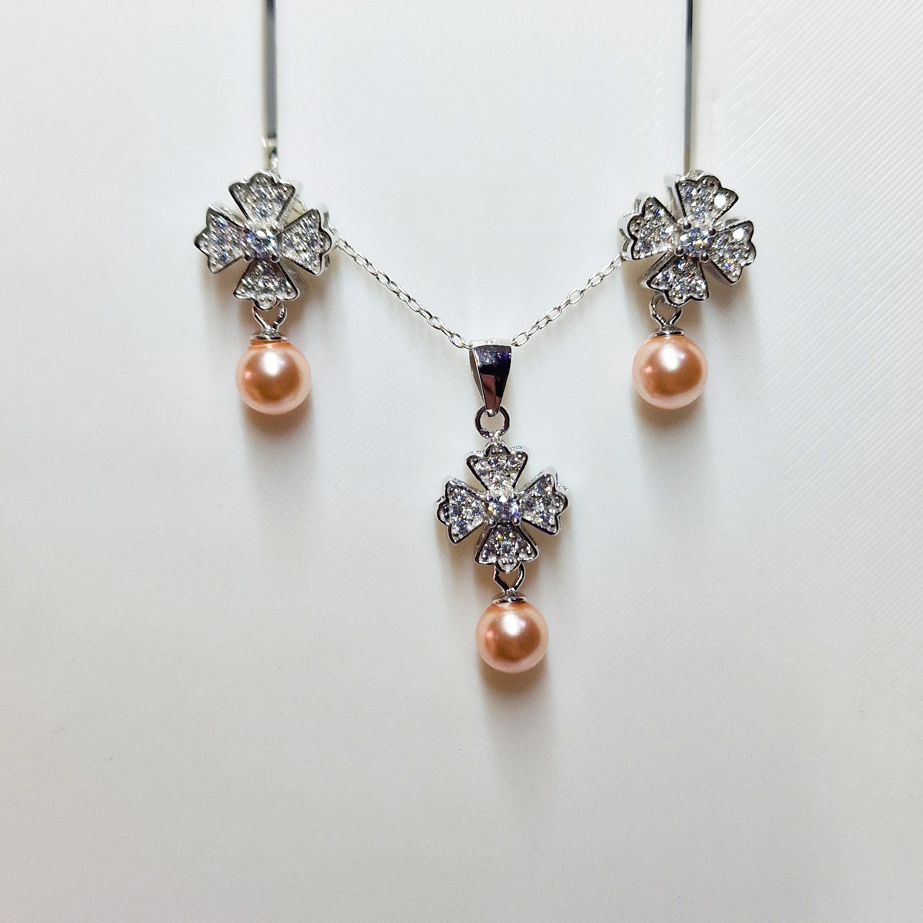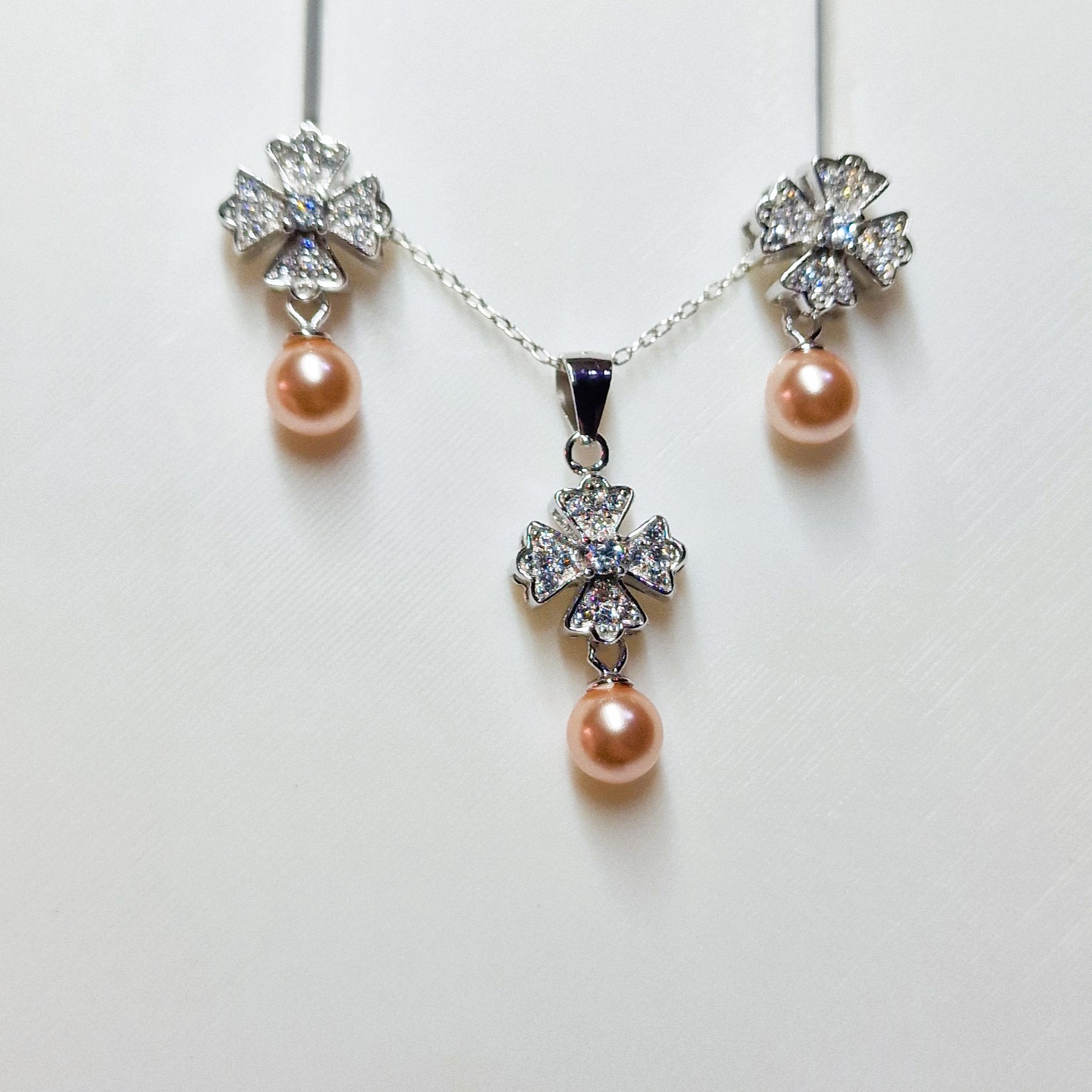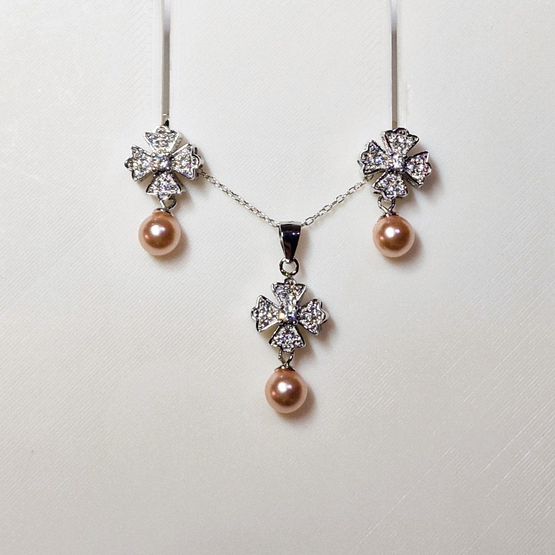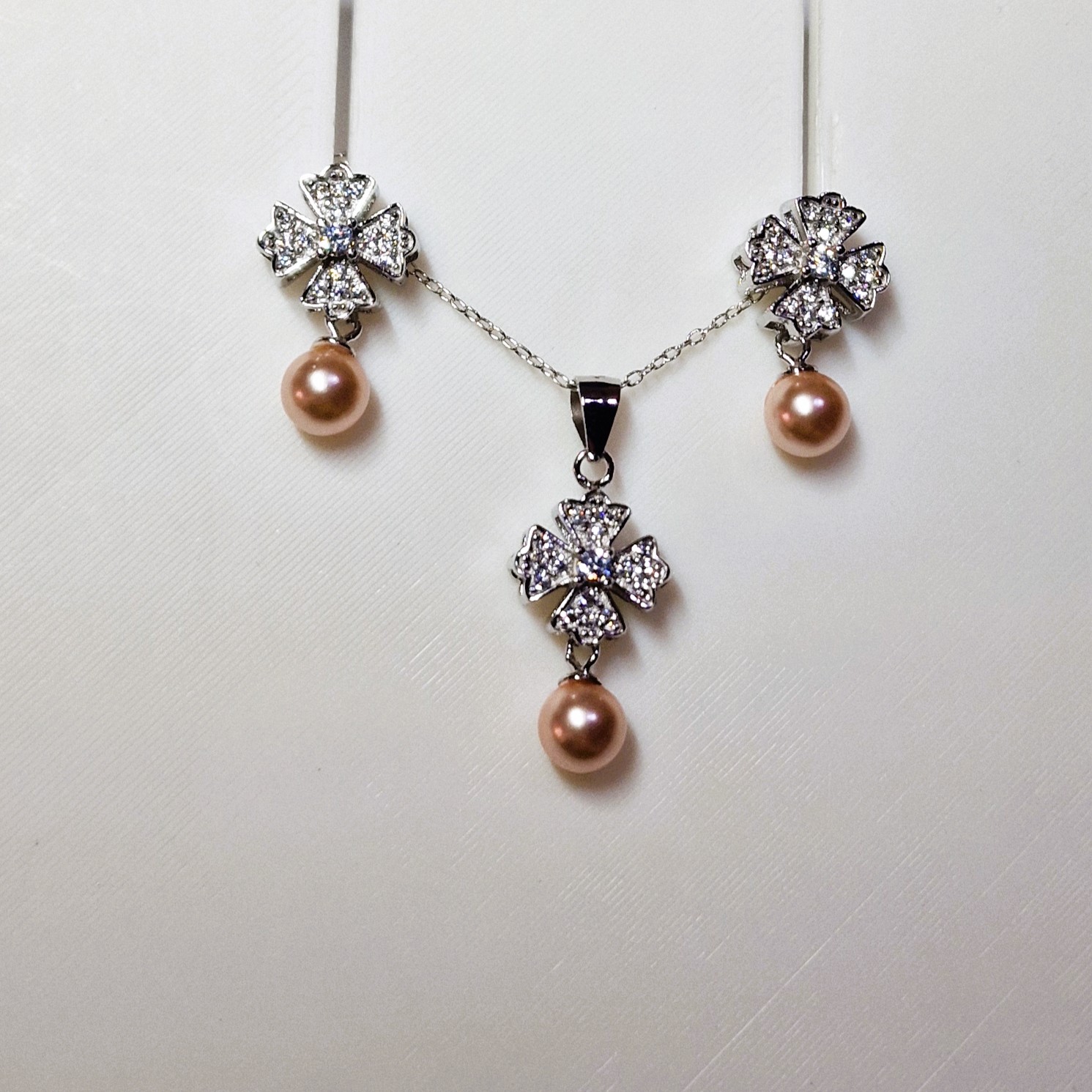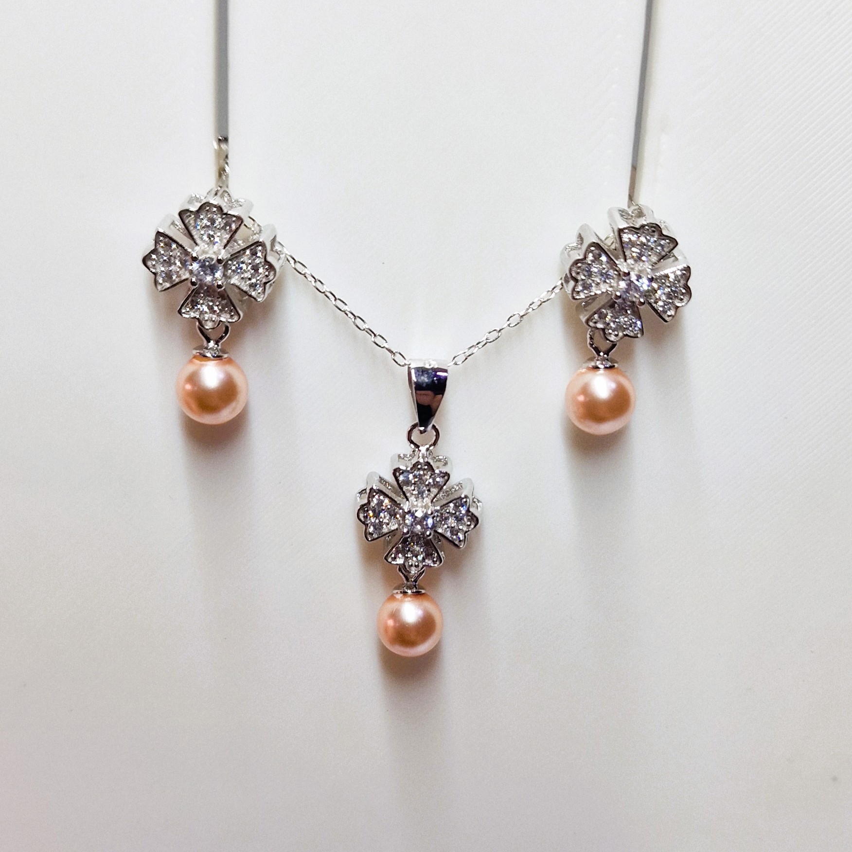 This stunning matching set, crafted from high-quality 925 sterling silver, includes a pendant, and a pair of stud-back earrings. This set features three openings designed to hold your unique pearls, making this set a perfect canvas for personalisation.