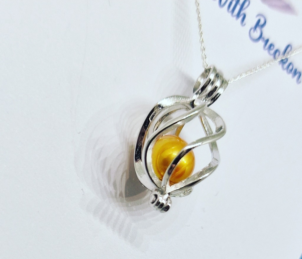 You can then put your pearl in the cage at home. So if you get pearls in the future or have any at home already, you can swap and change the pearl around inside the cage pendant.