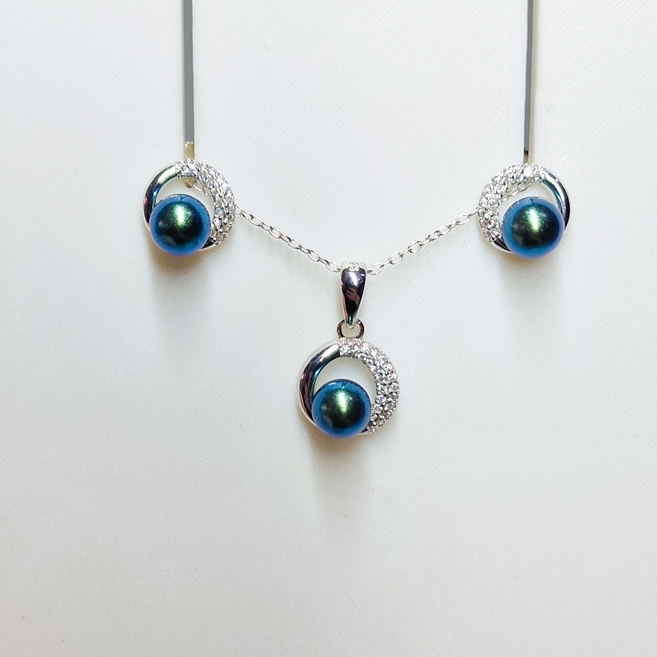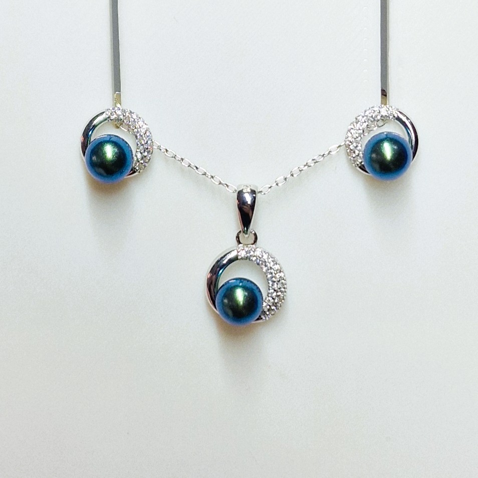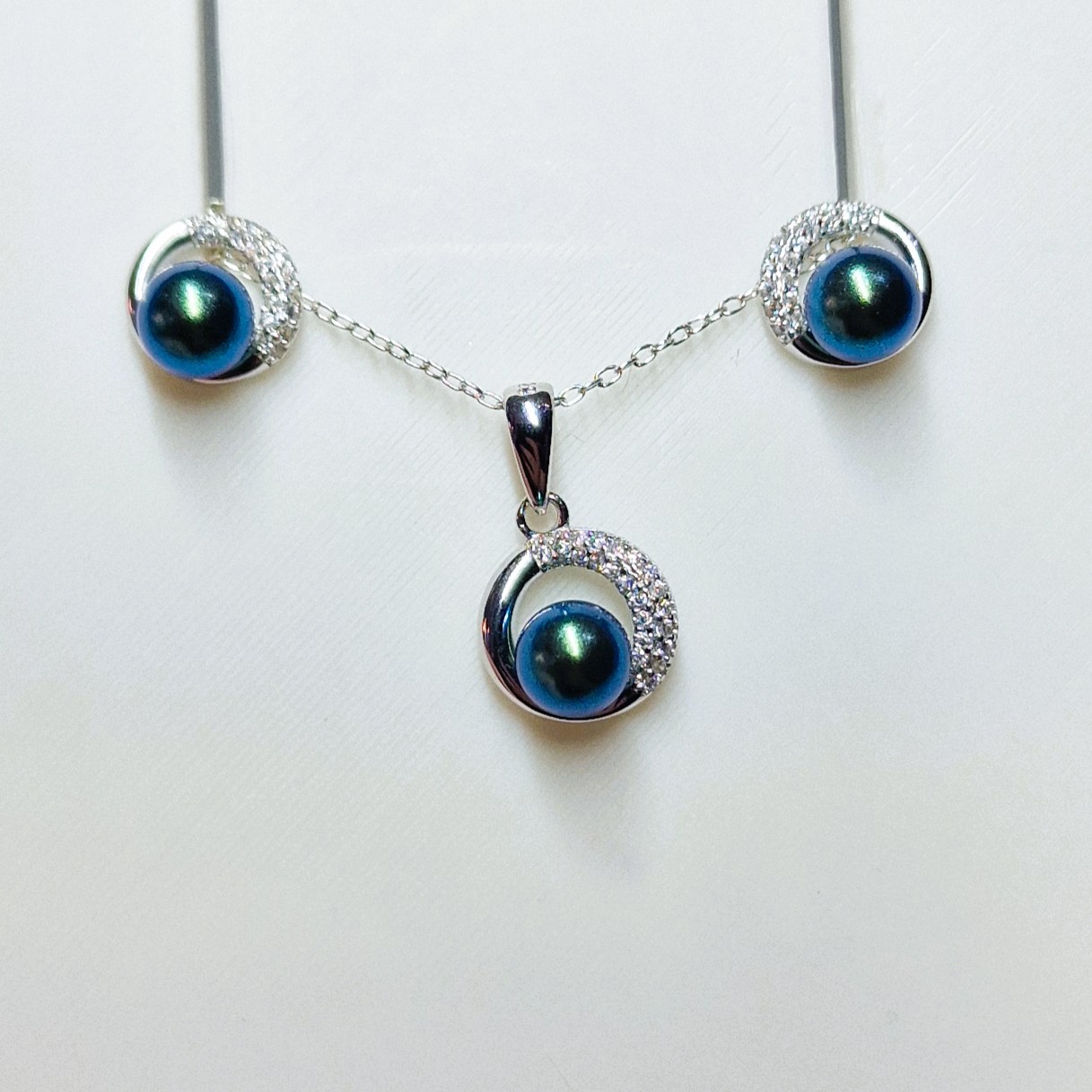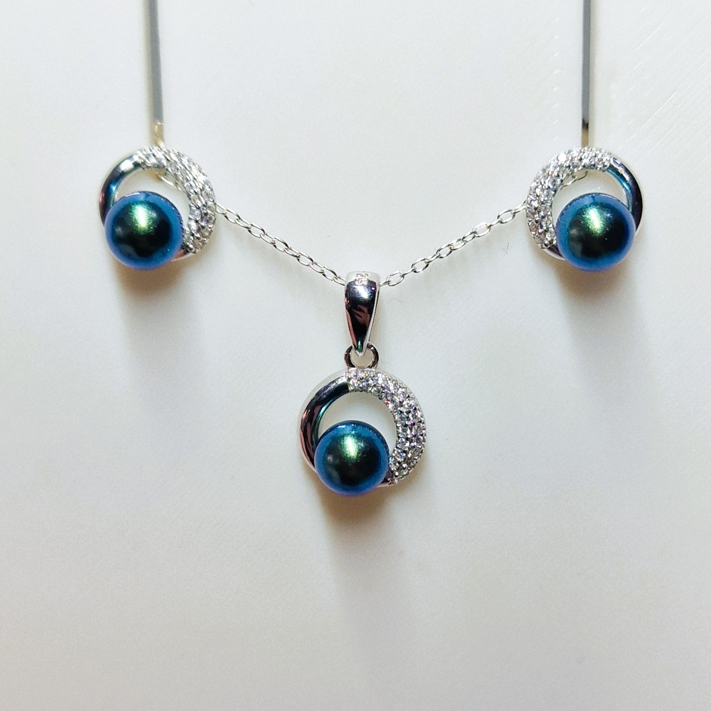 This stunning matching set, crafted from high-quality 925 sterling silver, includes a pendant, and a pair of stud-back earrings. This set features three openings designed to hold your unique pearls, making this set a perfect canvas for personalisation.