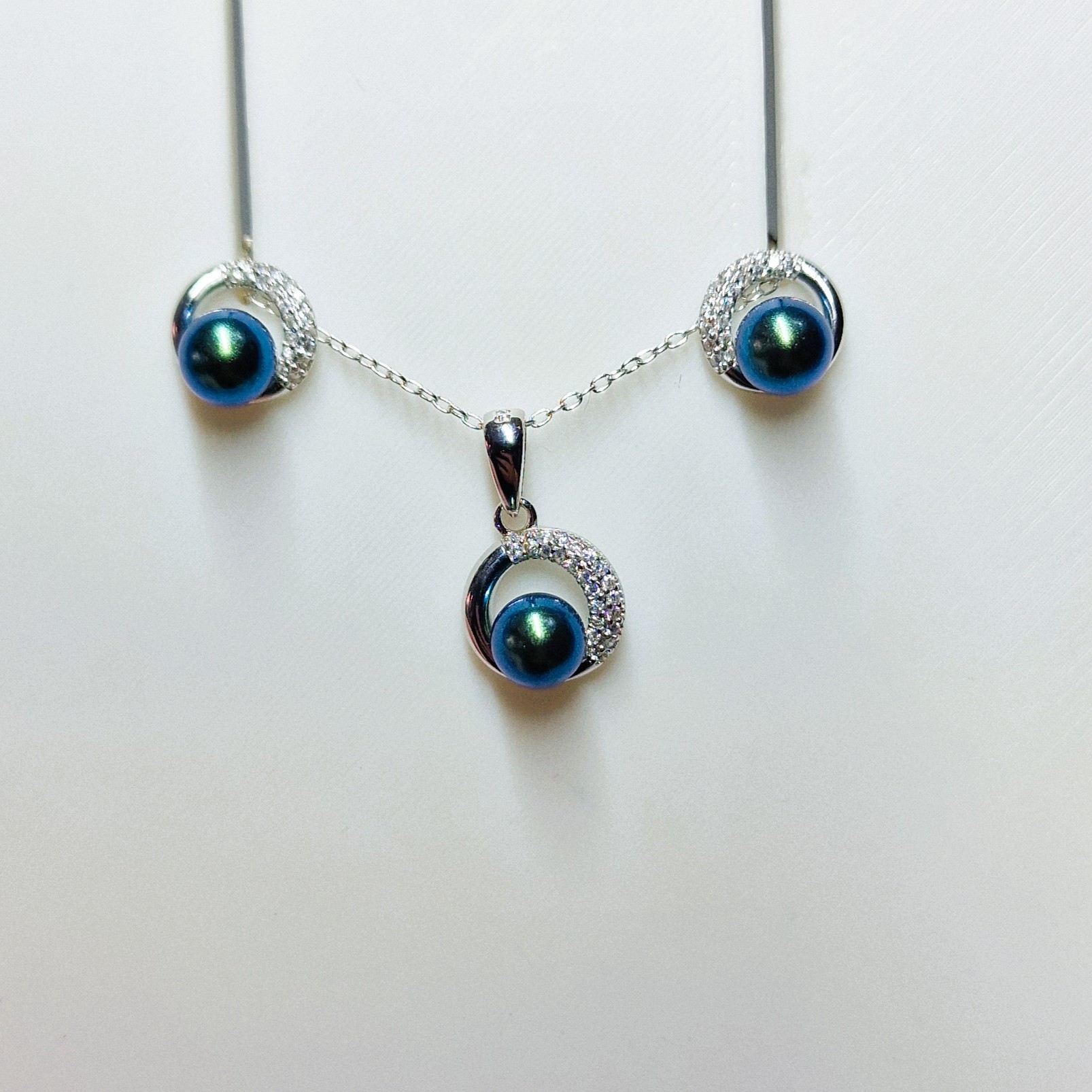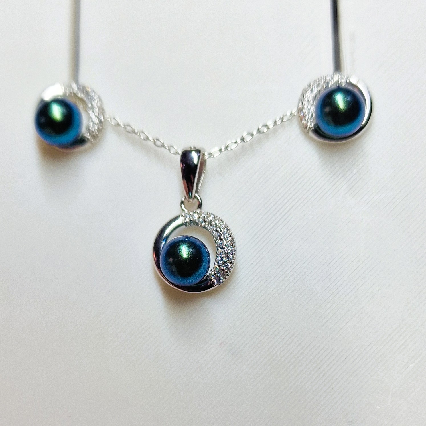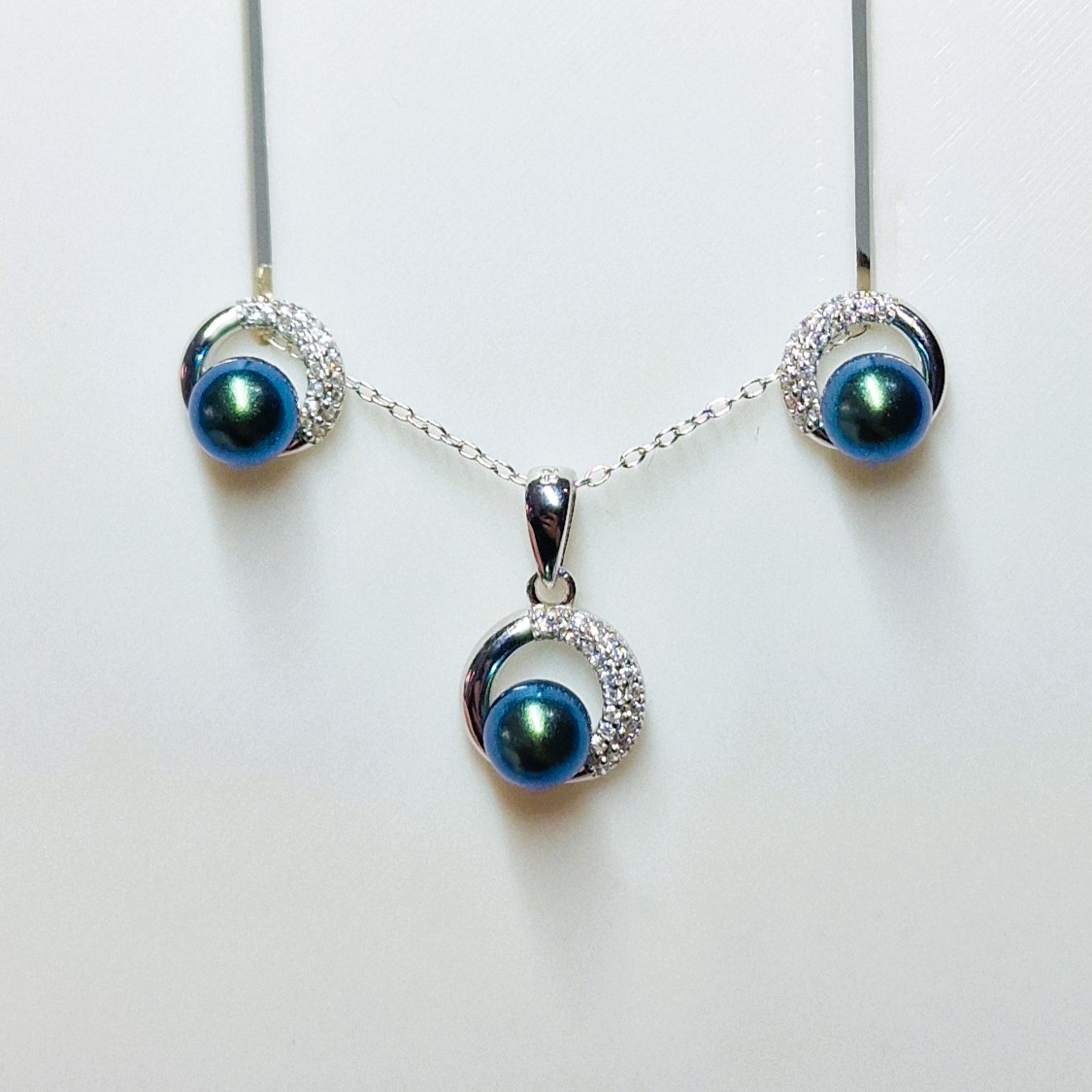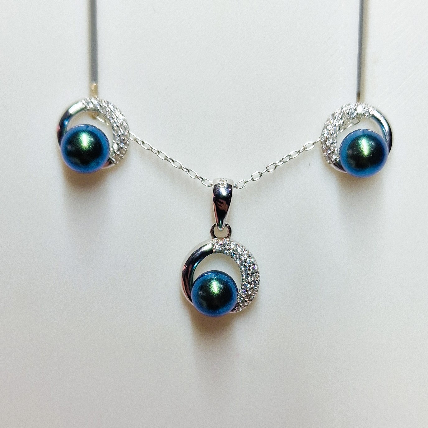 This stunning matching set, crafted from high-quality 925 sterling silver, includes a pendant, and a pair of stud-back earrings. This set features three openings designed to hold your unique pearls, making this set a perfect canvas for personalisation.