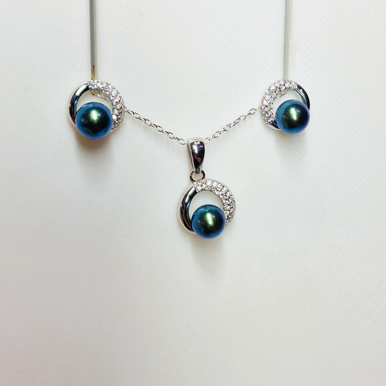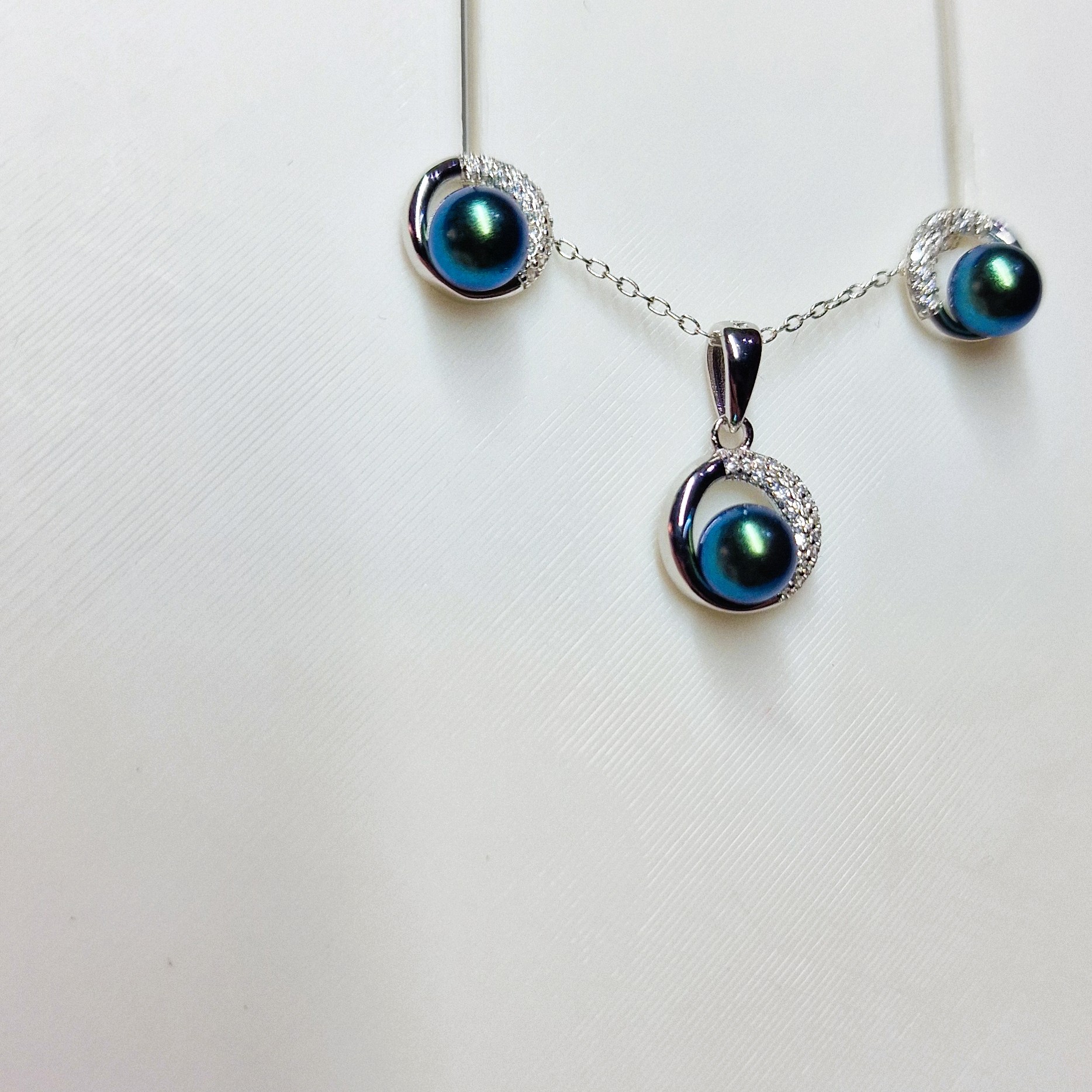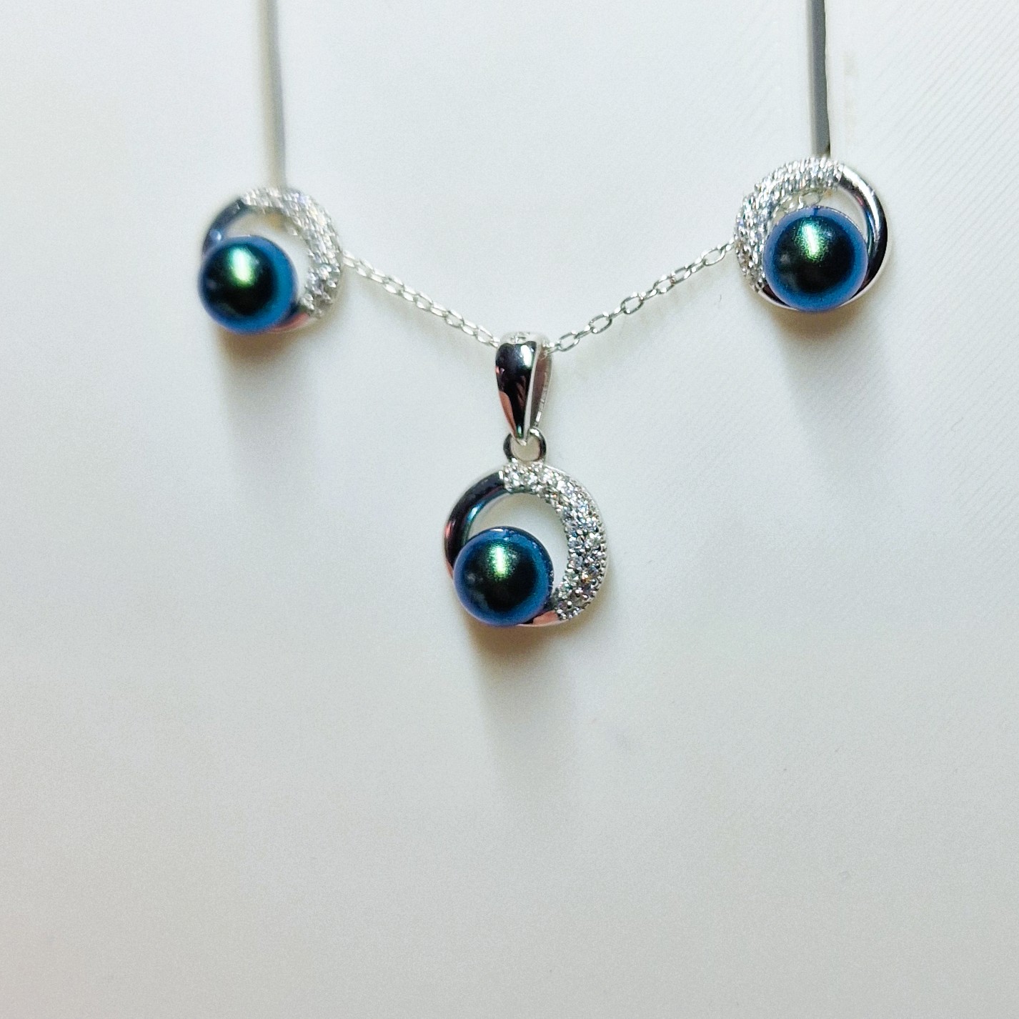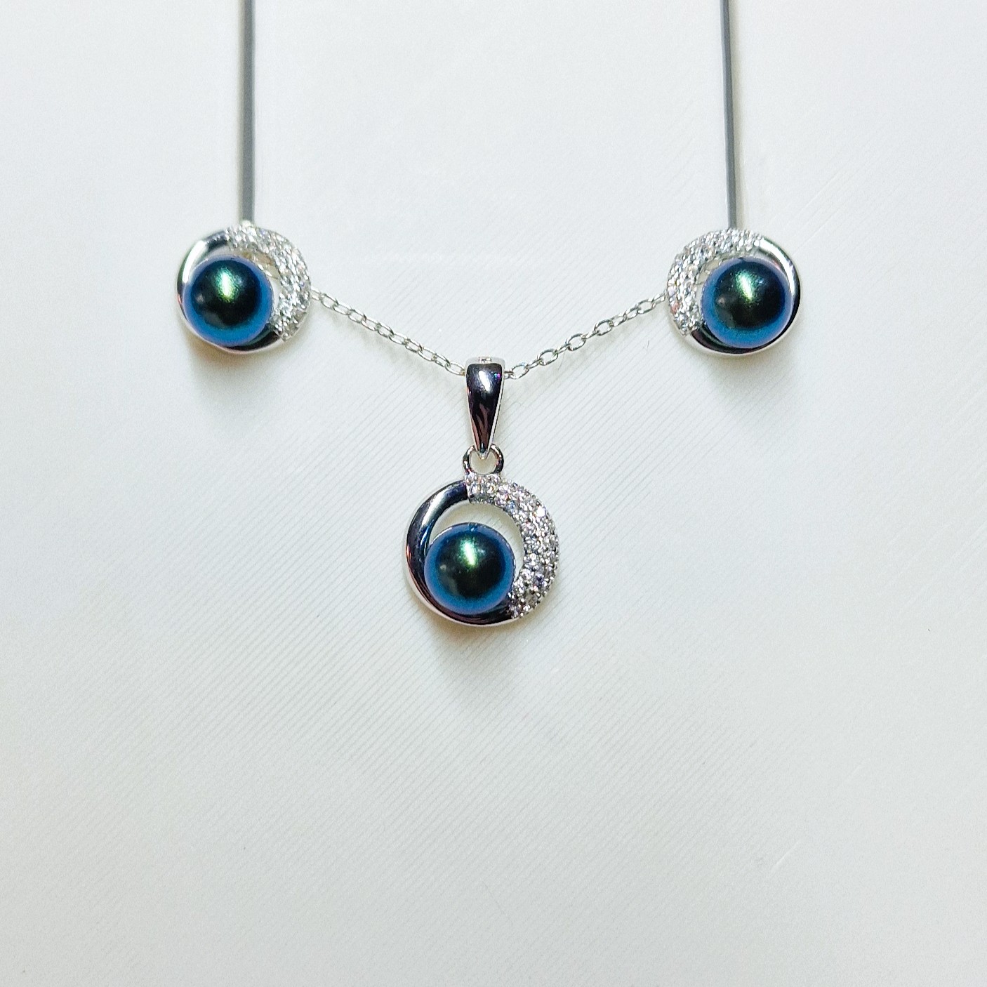This stunning matching set, crafted from high-quality 925 sterling silver, includes a pendant, and a pair of stud-back earrings. This set features three openings designed to hold your unique pearls, making this set a perfect canvas for personalisation.