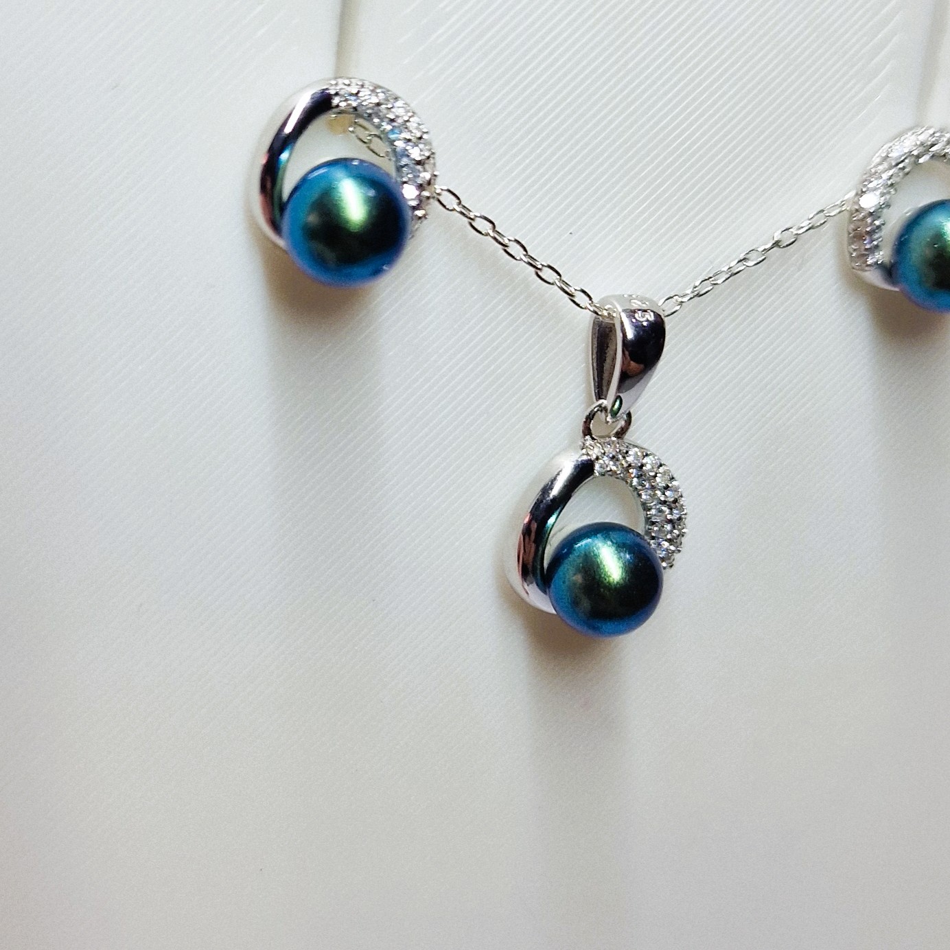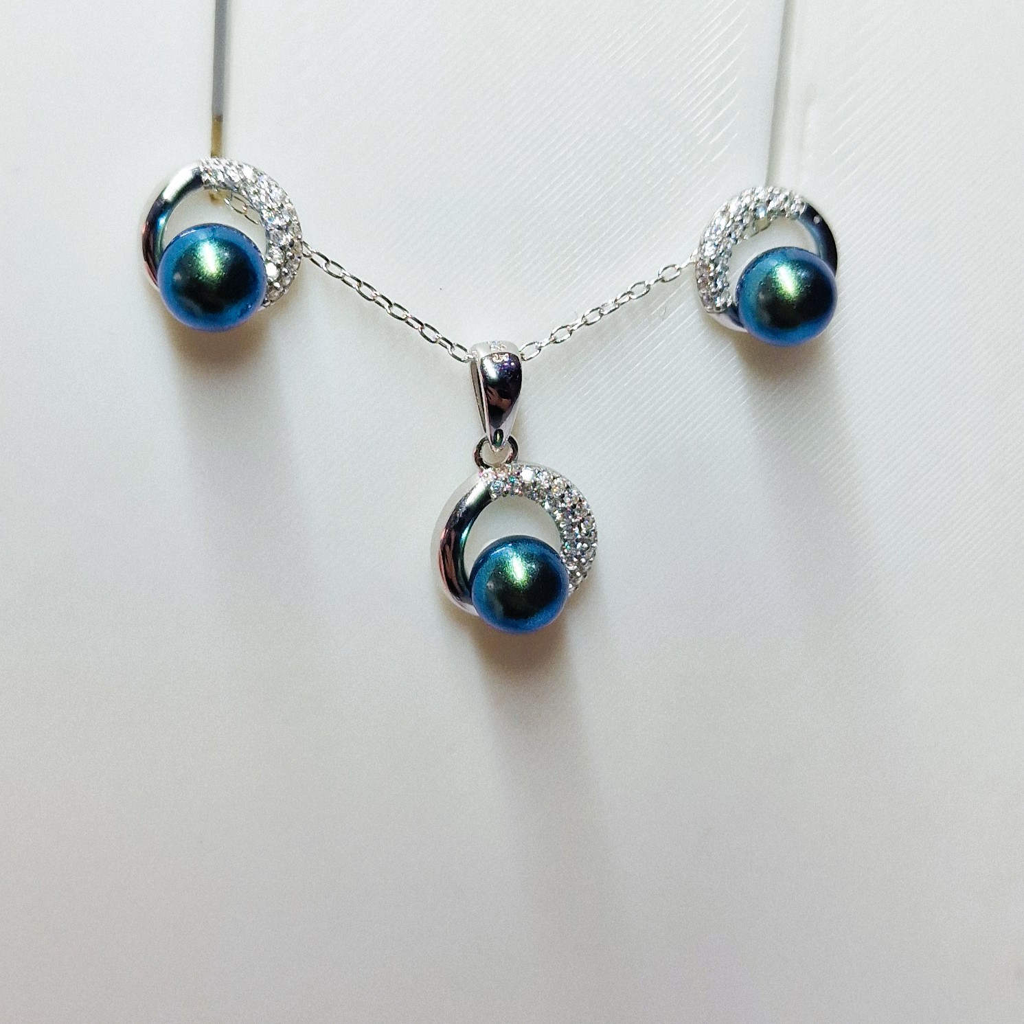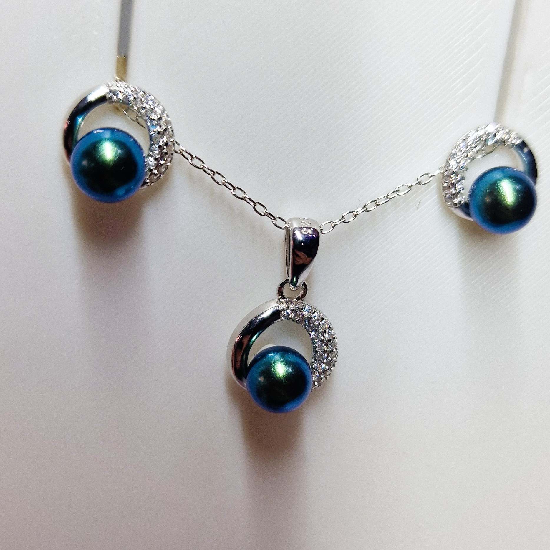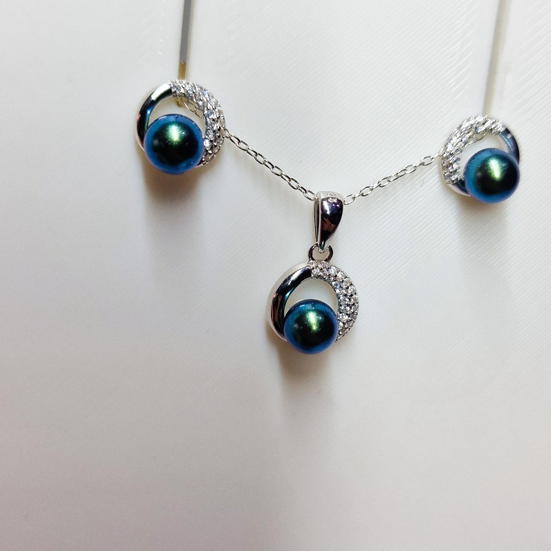 This stunning matching set, crafted from high-quality 925 sterling silver, includes a pendant, and a pair of stud-back earrings. This set features three openings designed to hold your unique pearls, making this set a perfect canvas for personalisation.